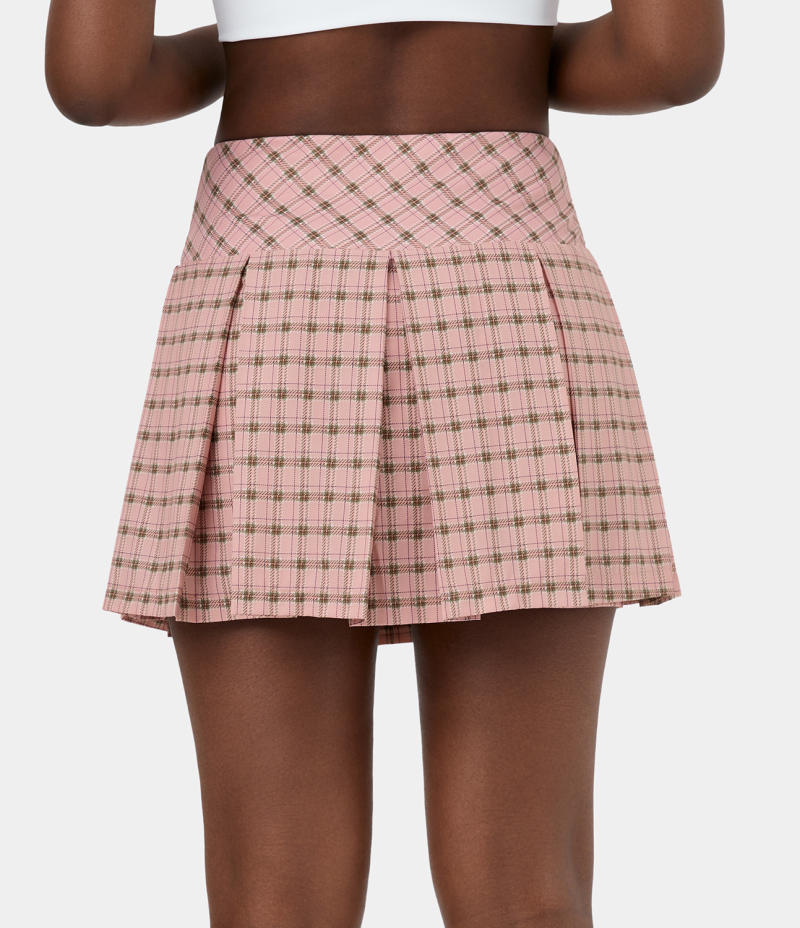 :: Halara High Waisted Plaid 2-in-1 Side Pocket Pleated Tennis Women's Skirts Blossom Plaid | MBTIXER-62