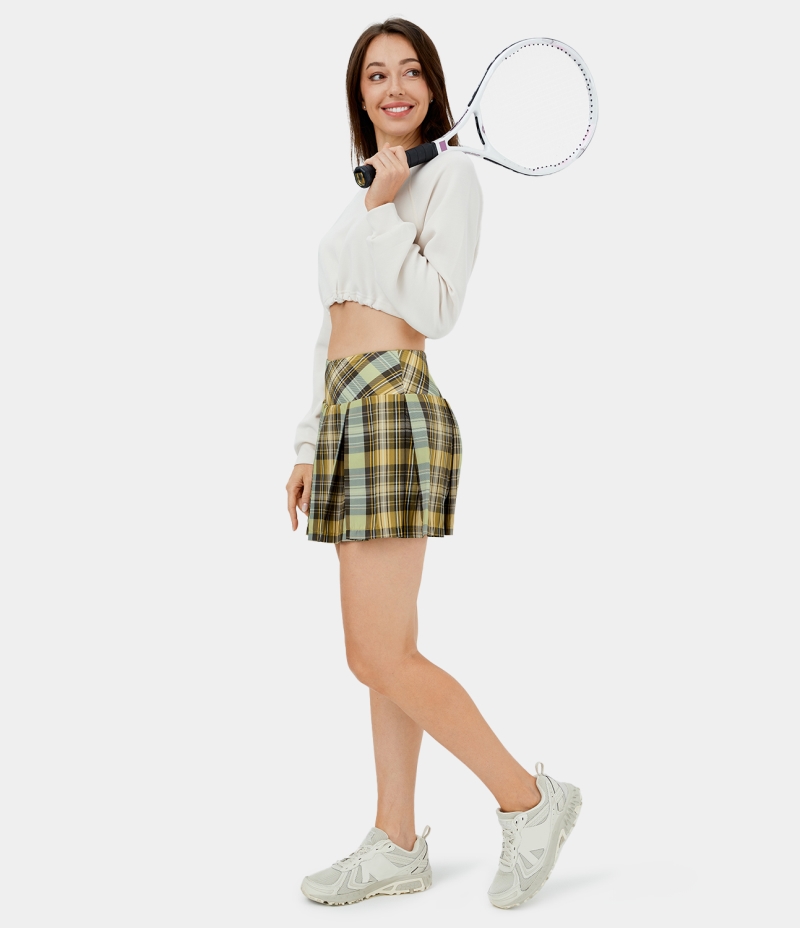 :: Halara High Waisted Plaid 2-in-1 Side Pocket Pleated Tennis Women's Skirts Mustard Plaid | 693054-VEA