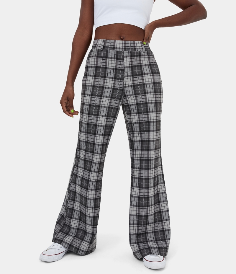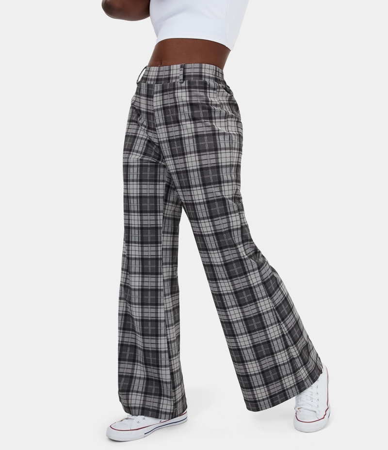 Halara High Waisted Plaid Wide Leg Casual Women's Pants Black Plaid | 964102-HPQ