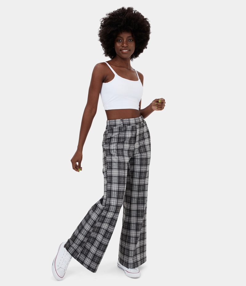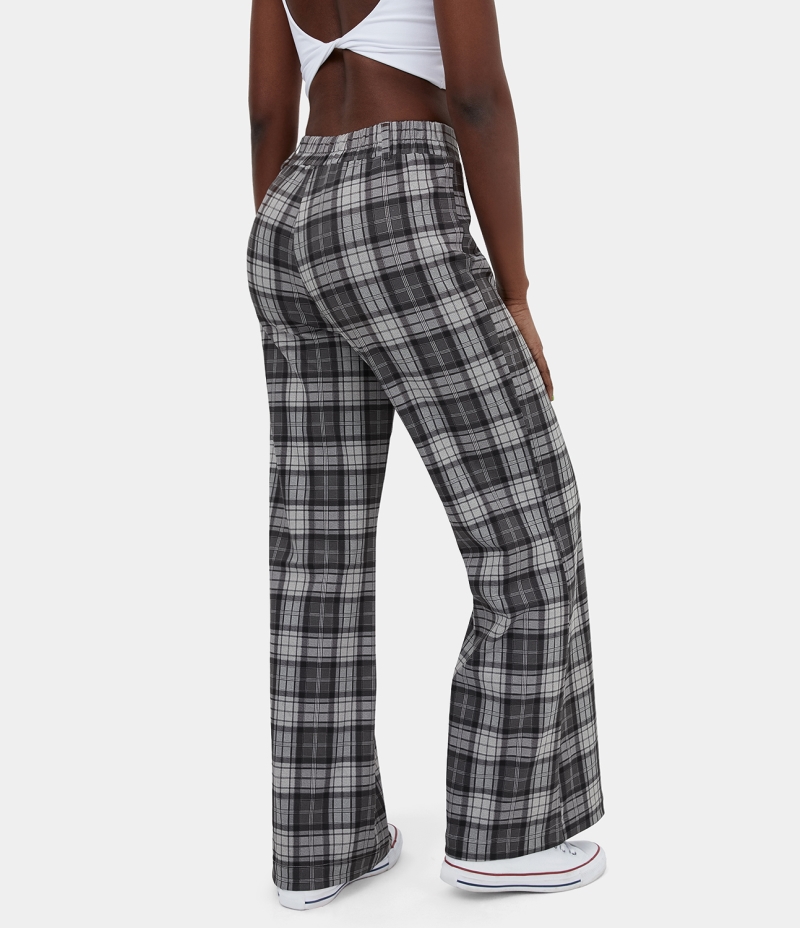 :: Halara High Waisted Plaid Wide Leg Casual Women's Pants Black Plaid | 964102-HPQ