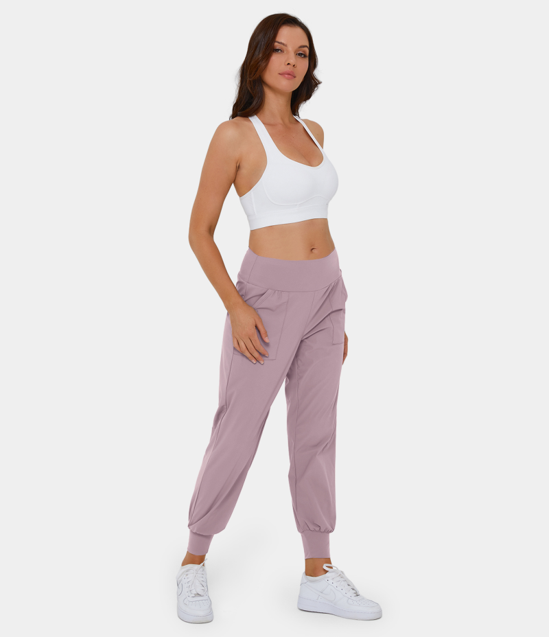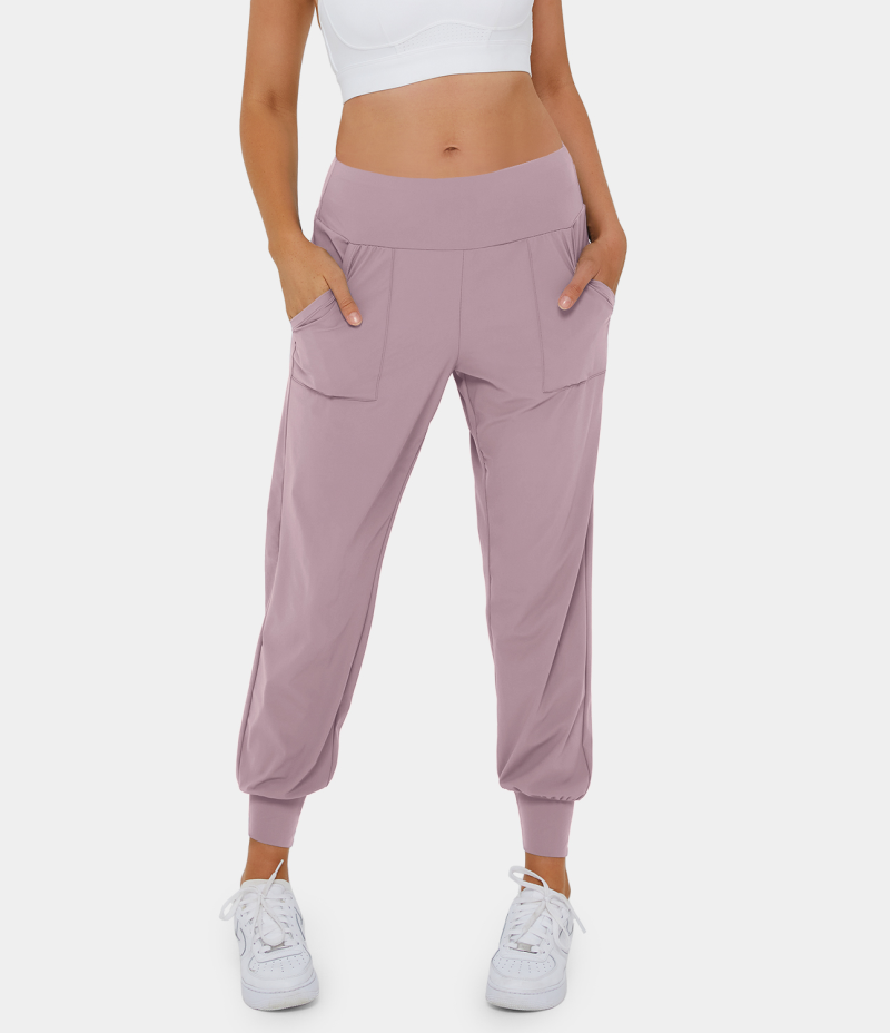 :: Halara High Waisted Plain Side Pocket Women's Jogger Lotus Pink | 530617-NPB