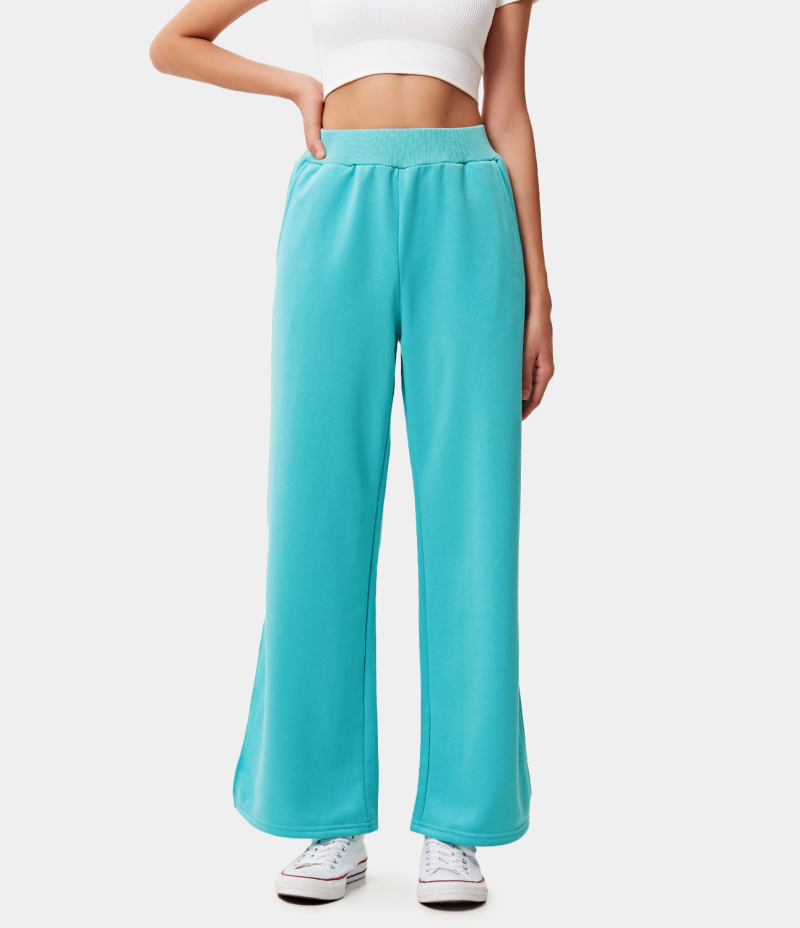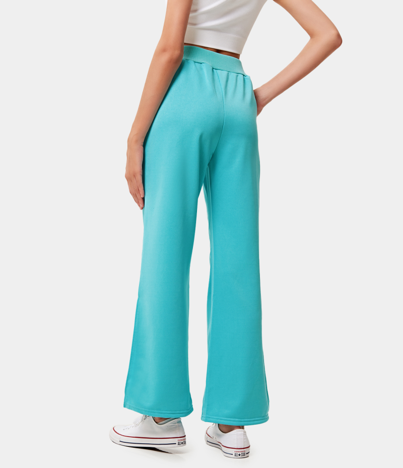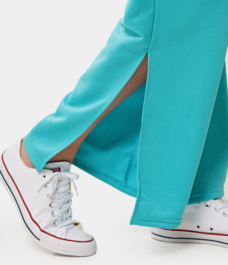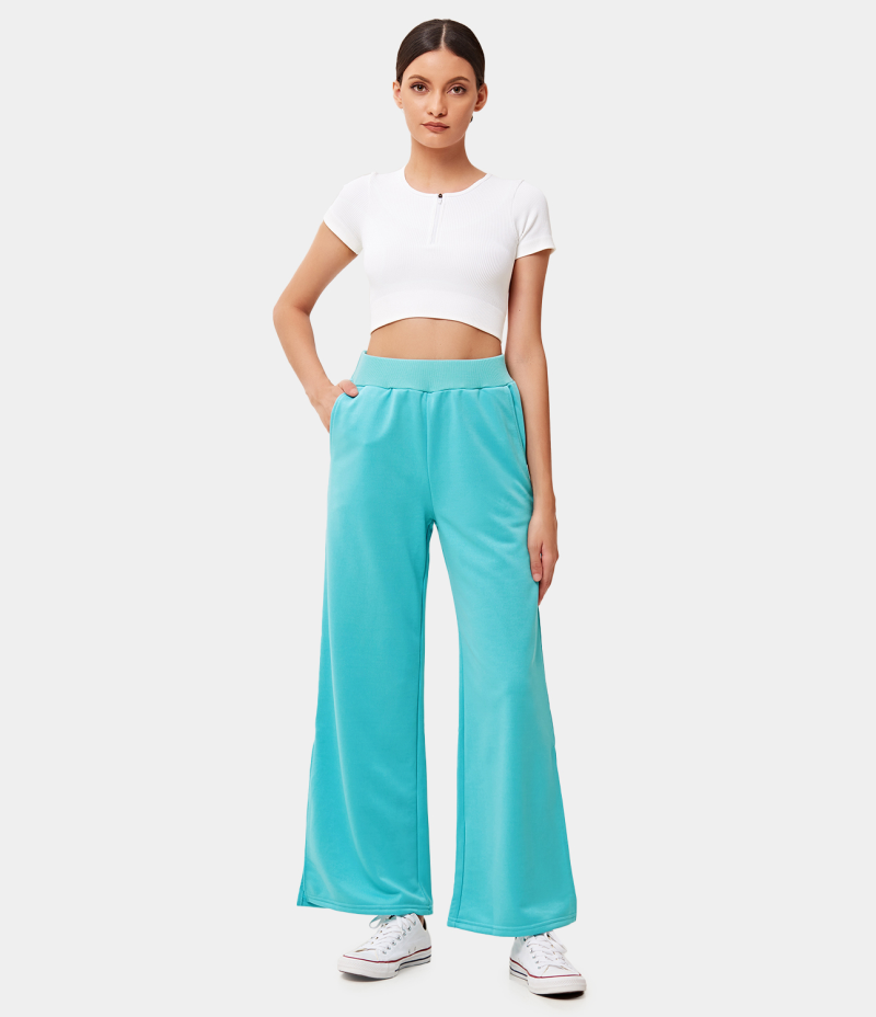 :: Halara High Waisted Pocket Side Split Hem Plain Wide Leg Women's Pants Robin Egg Blue | 610548-TDV