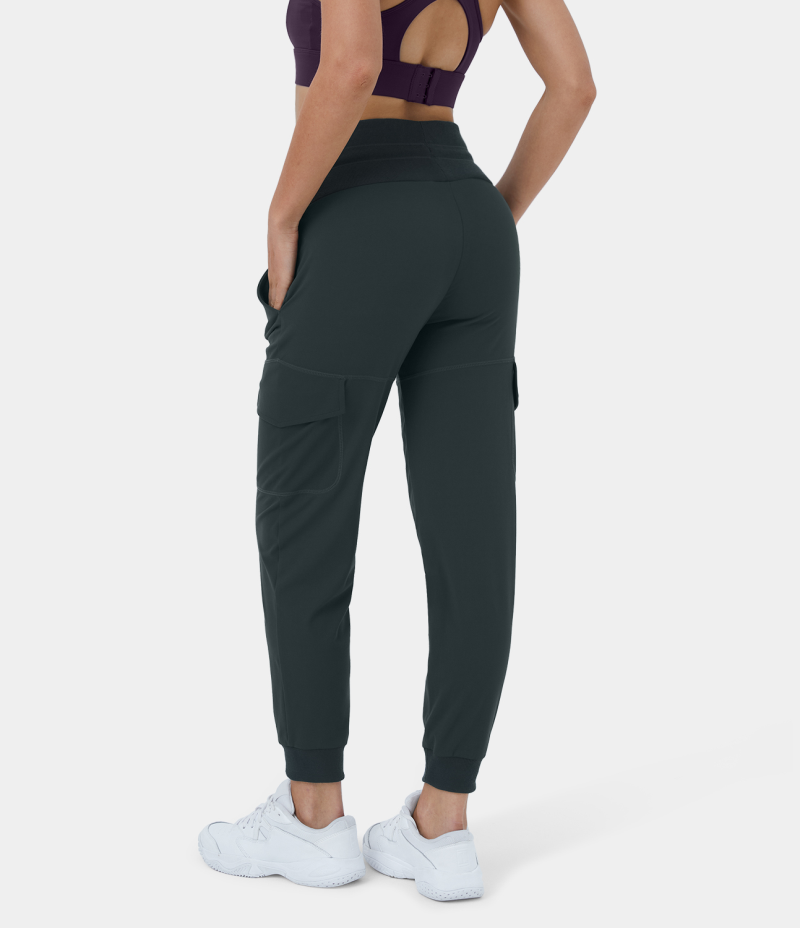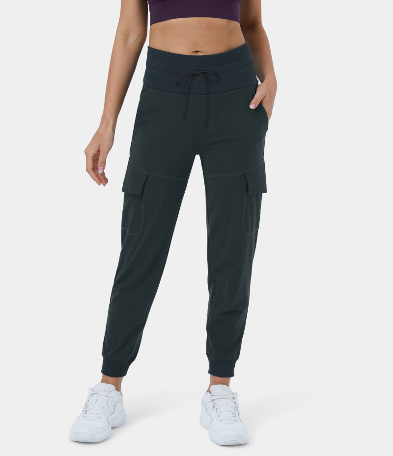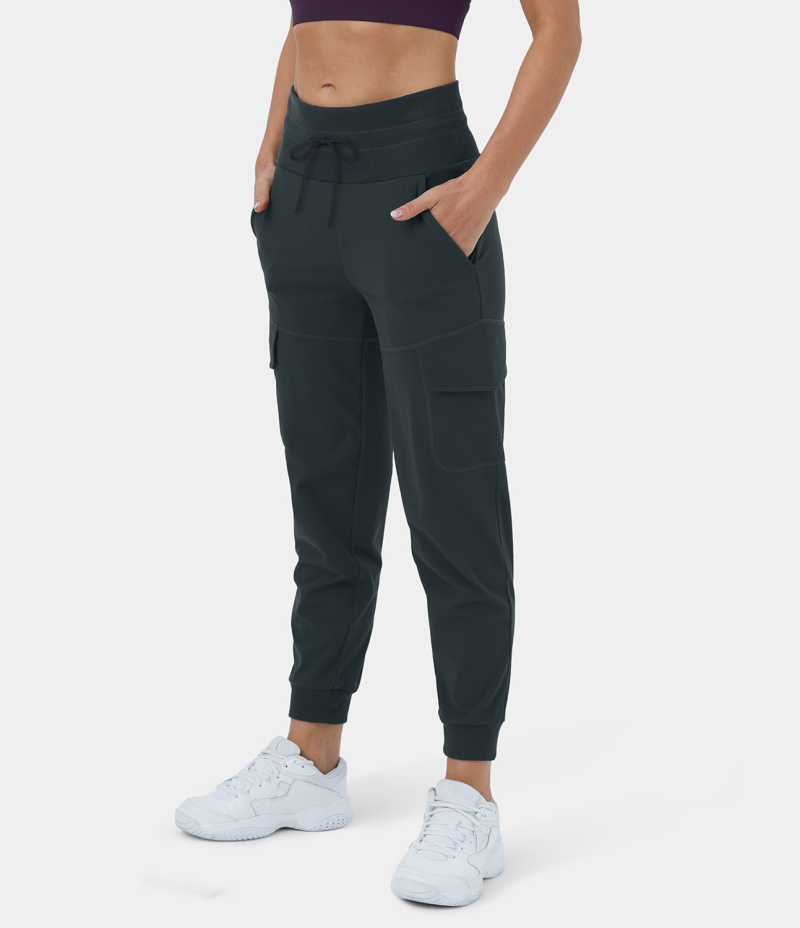 Halara High Waisted Ribbed Drawstring Side Pocket Cargo Casual Women's Jogger Dark Grey | 412350-VQO