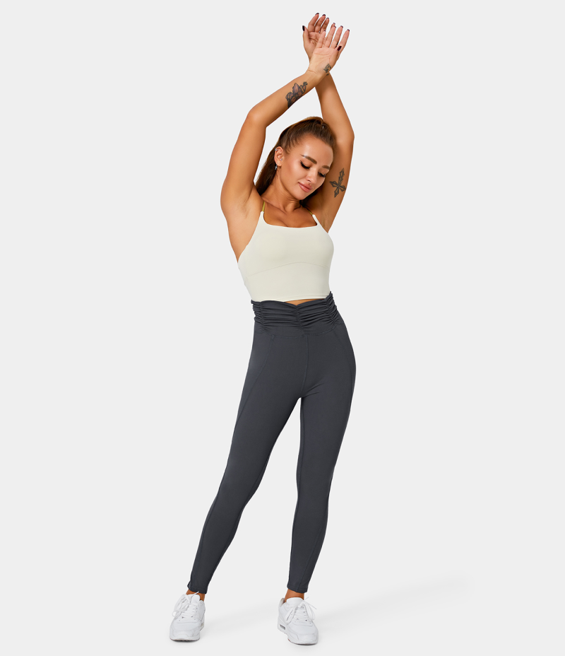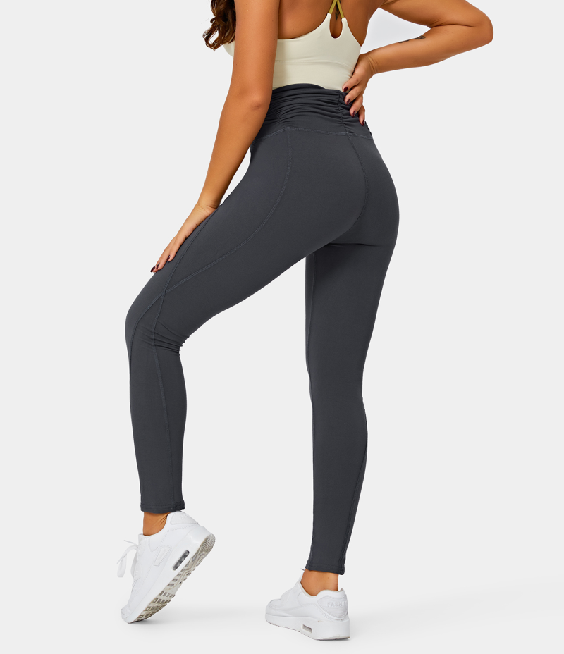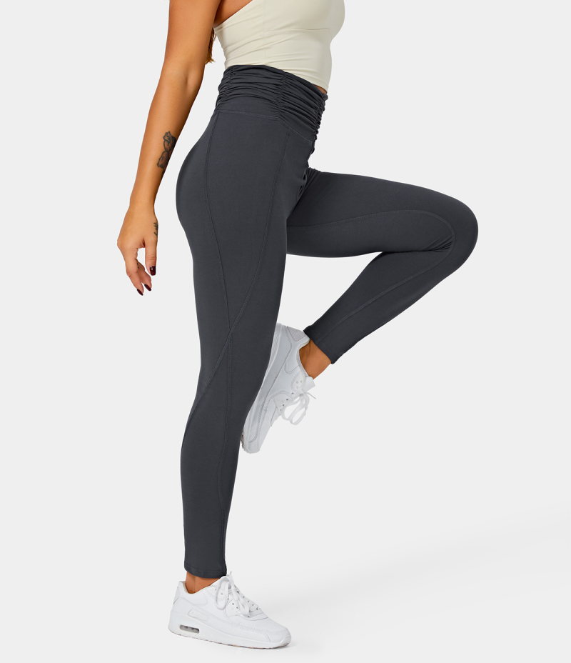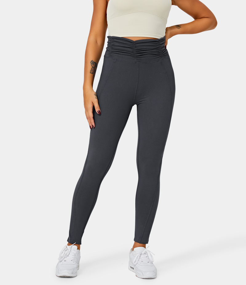 :: Halara High Waisted Ruched Plain Full Length Women's Leggings Deep Navy | 504178-DEV