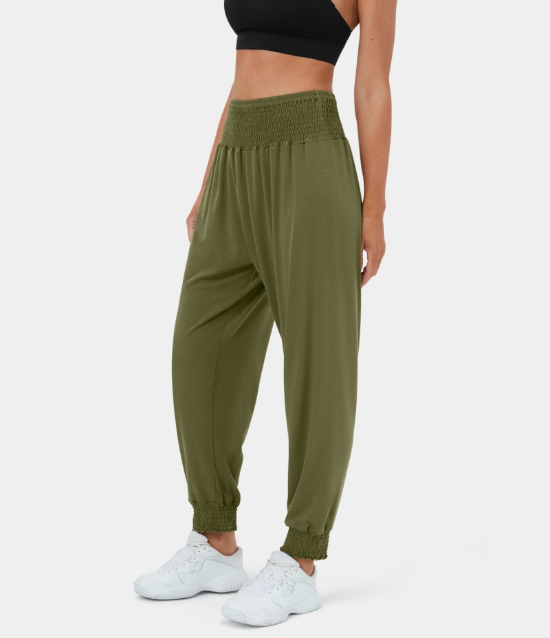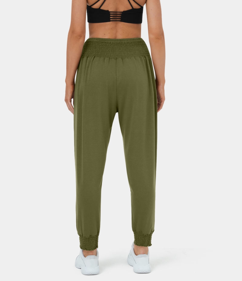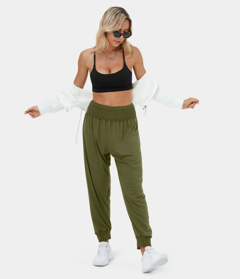 :: Halara High Waisted Shirred Yoga Women's Jogger Grey Green | 532648-ALN