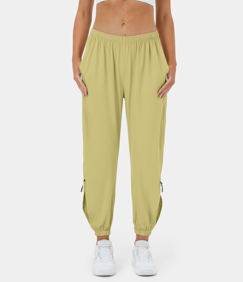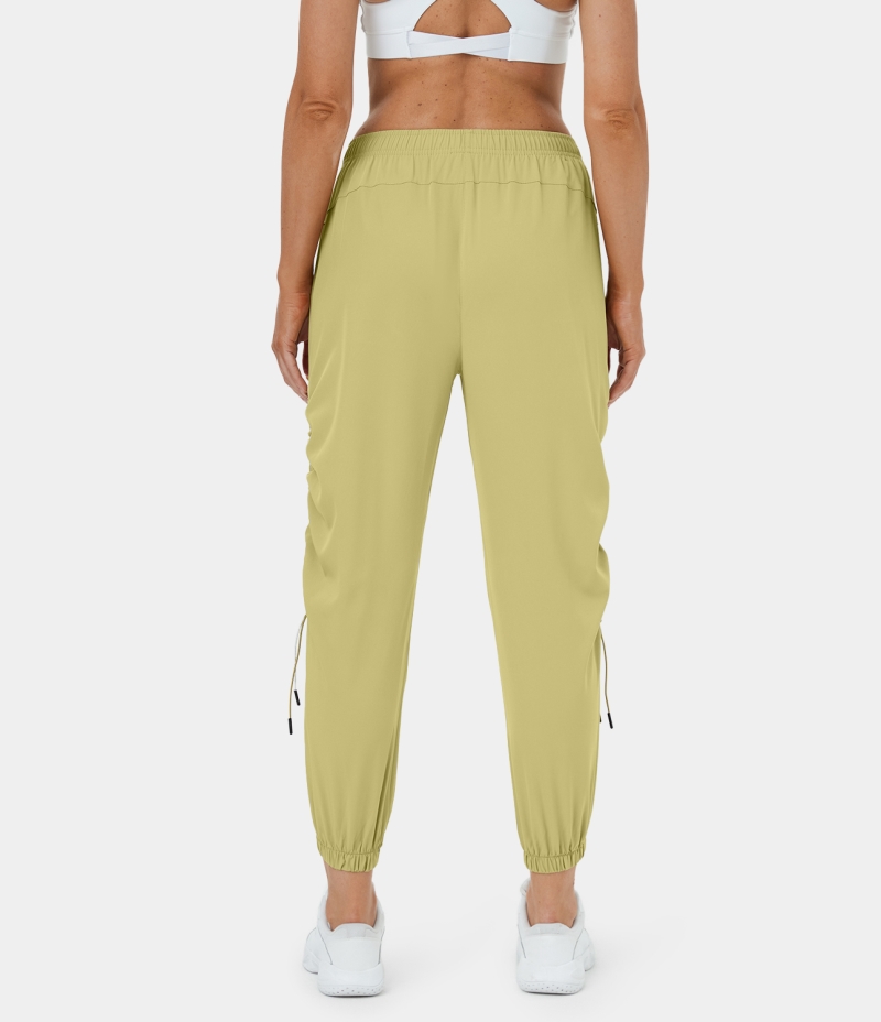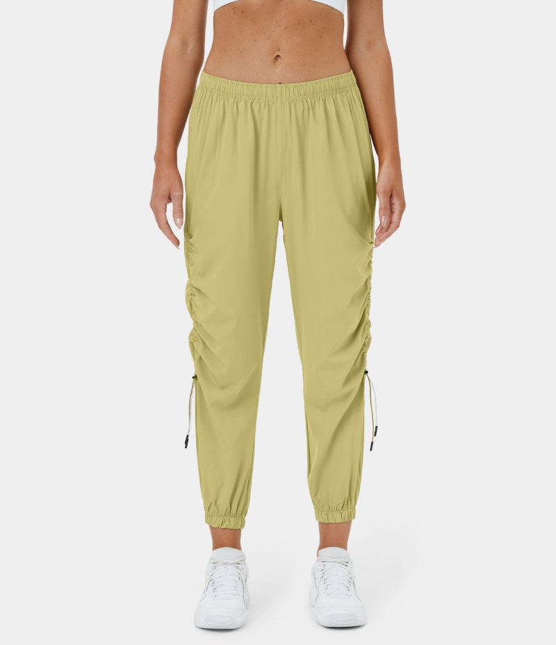 :: Halara High Waisted Side Drawstring Cut Out Pocket Dance Women's Jogger Shadow Green | 685913-MSA