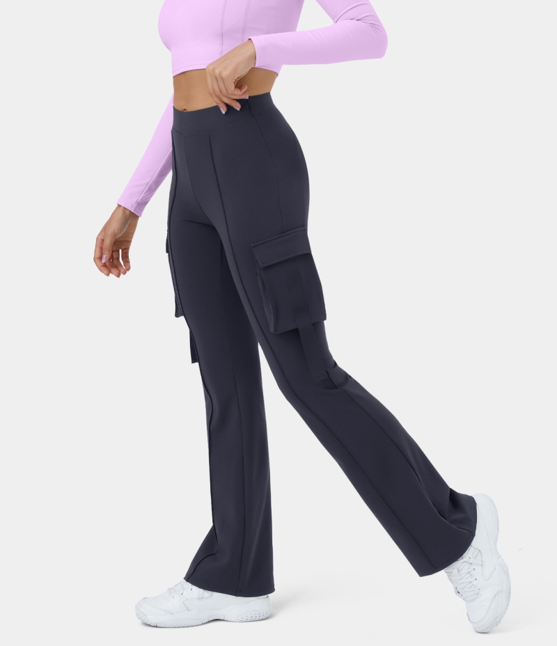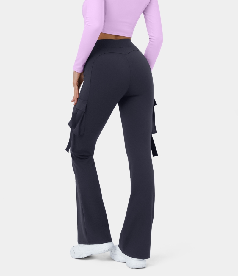 :: Halara High Waisted Side Flap Pocket Cargo Flare Casual Women's Leggings Midnight Sail | 782136-MTL
