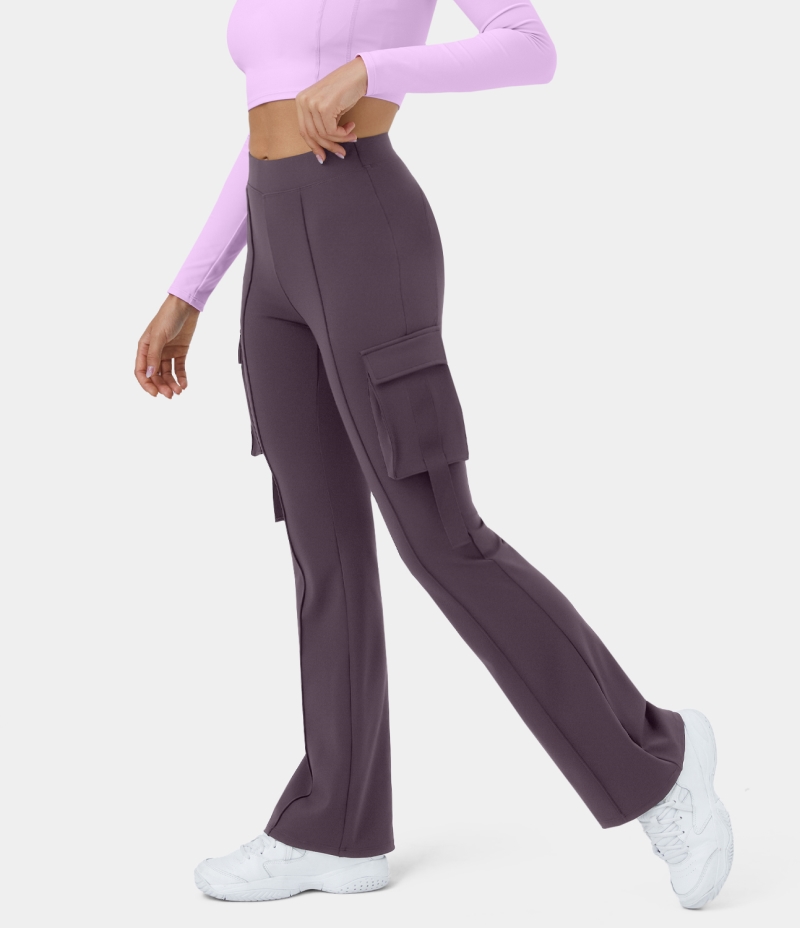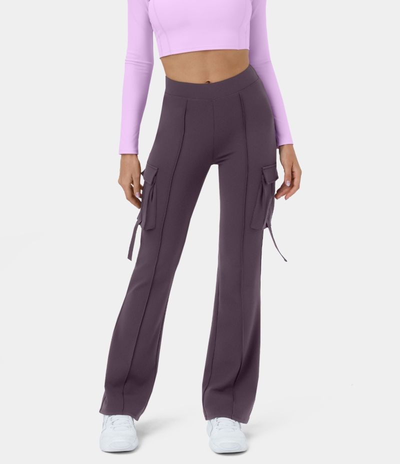 :: Halara High Waisted Side Flap Pocket Cargo Flare Casual Women's Leggings Plum Perfect | 597162-FJP