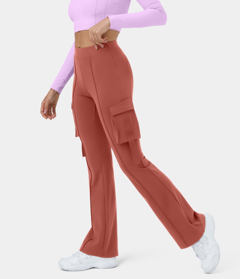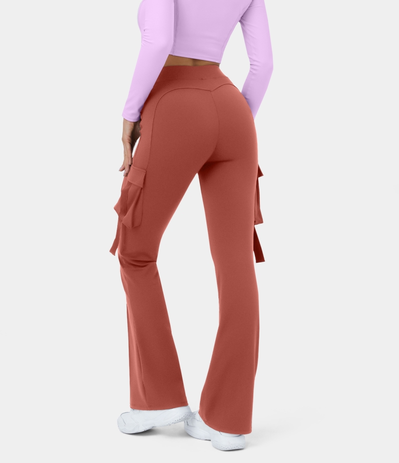 :: Halara High Waisted Side Flap Pocket Cargo Flare Casual Women's Leggings Rooibos Tea | 759063-RCF
