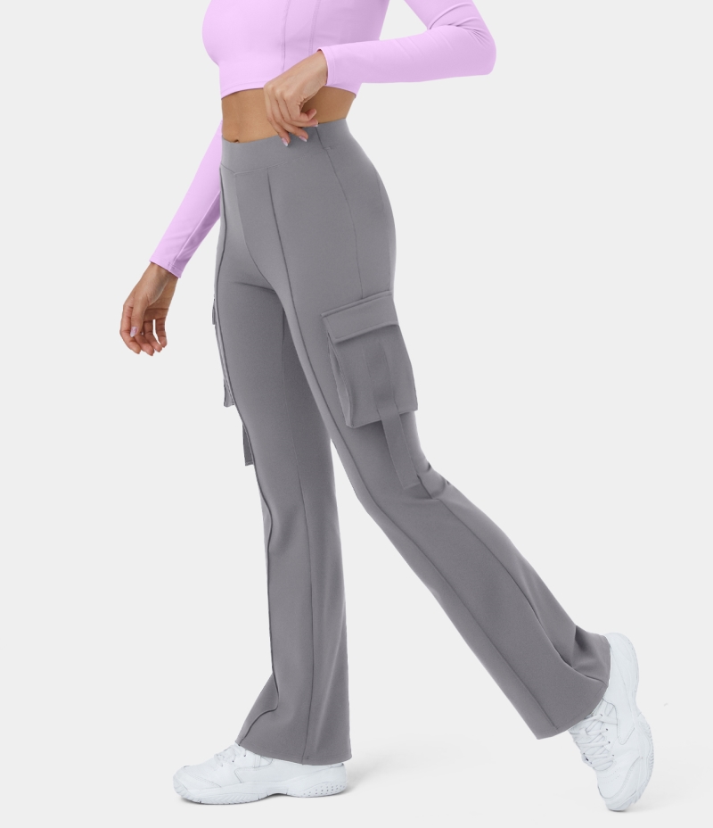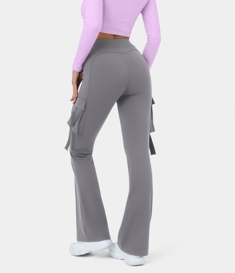 :: Halara High Waisted Side Flap Pocket Cargo Flare Casual Women's Leggings Wet Weather | 498075-KZM