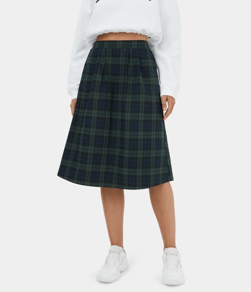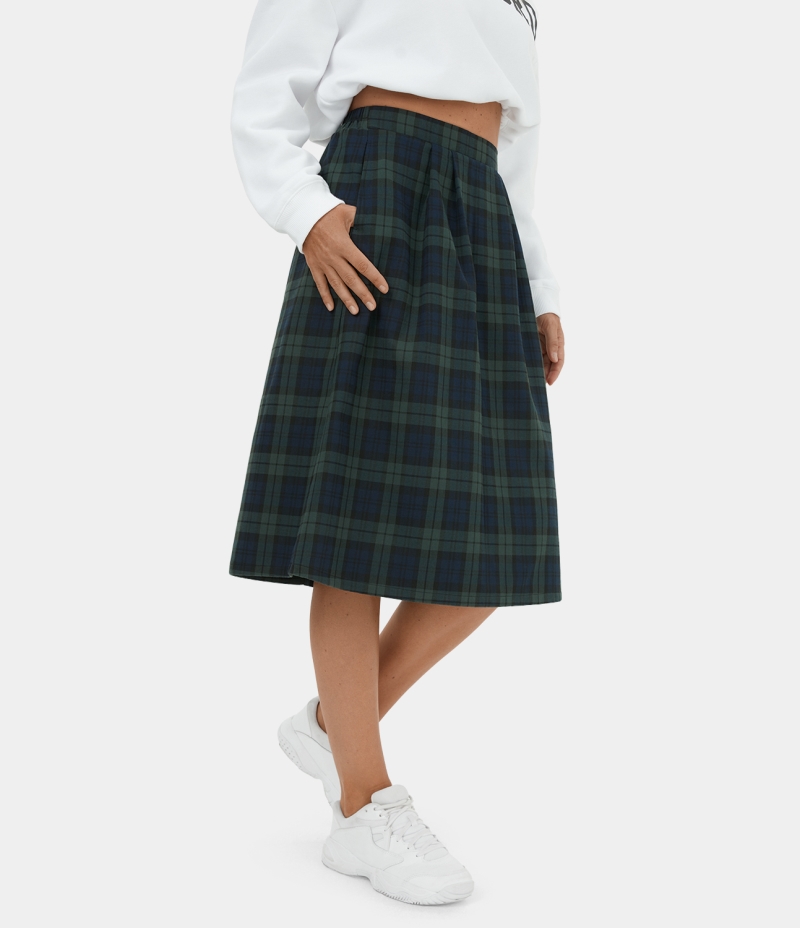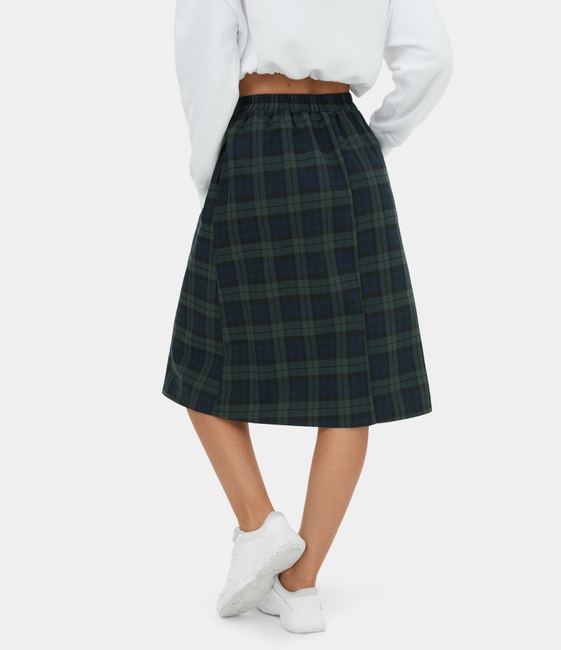 :: Halara High Waisted Side Pocket A Line Plaid Midi Casual Women's Skirts Blue Green Plaid | 647902-RUF