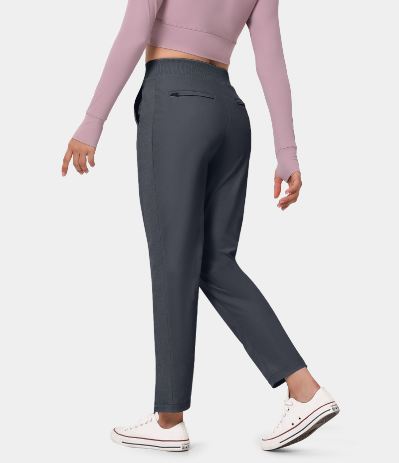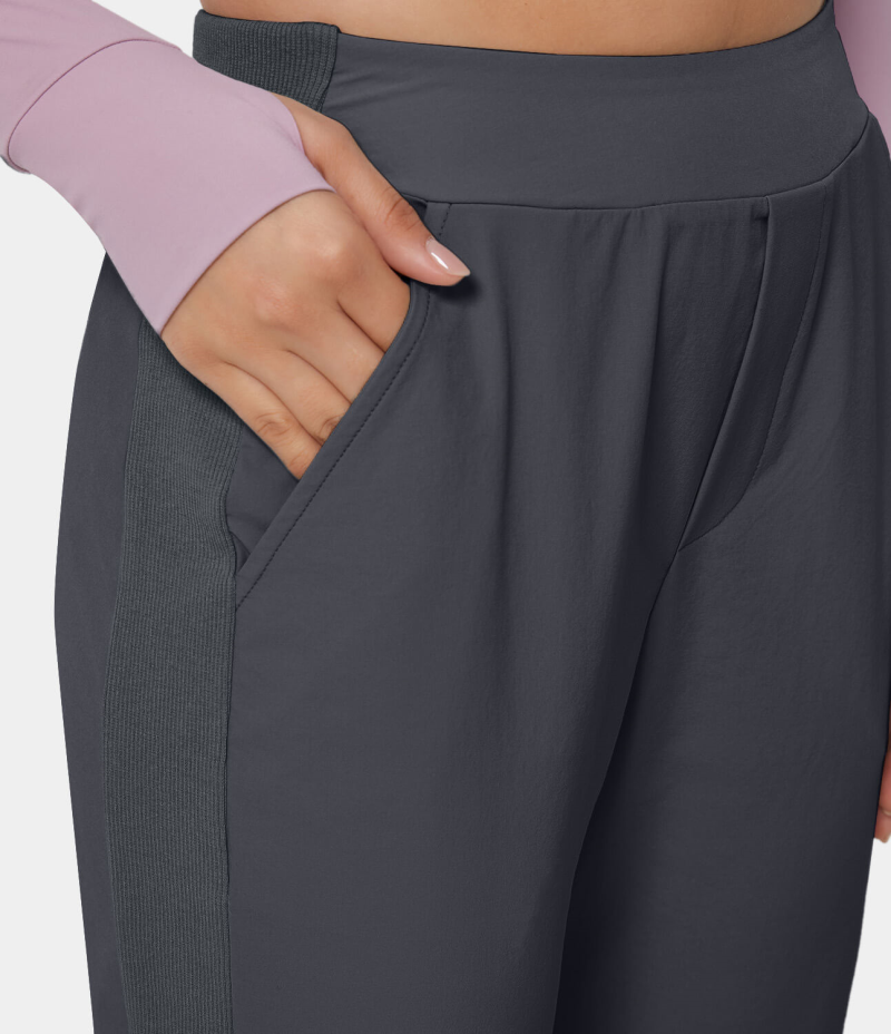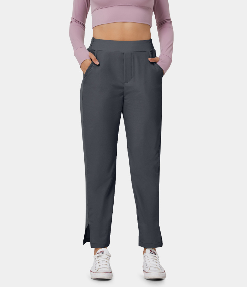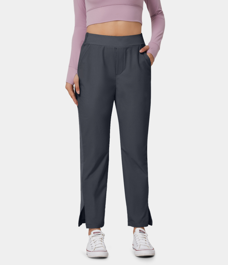:: Halara High Waisted Side Pocket Color Block Split Hem Women's Pants Midnight Blue | 571482-DWV