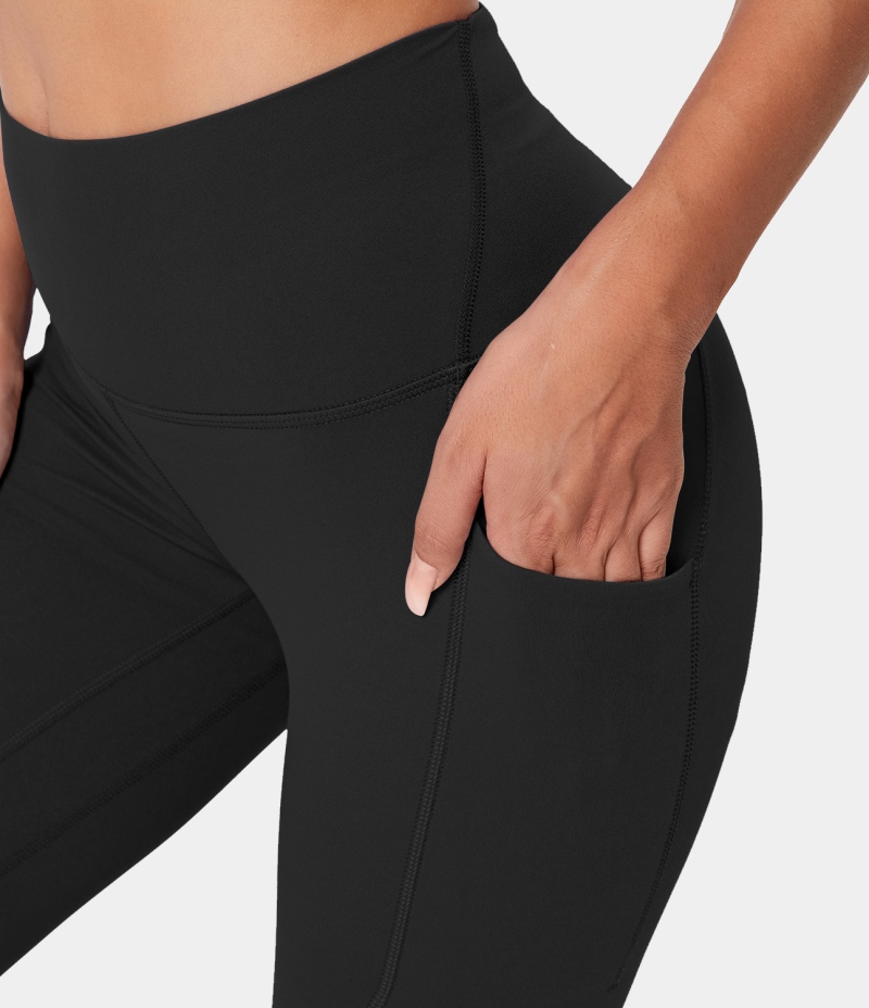 :: Halara High Waisted Side Pocket Plain 7/8 Women's Leggings Black | 263814-FSK