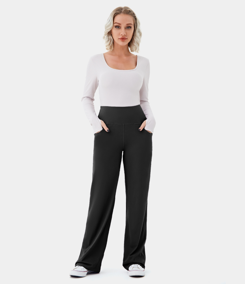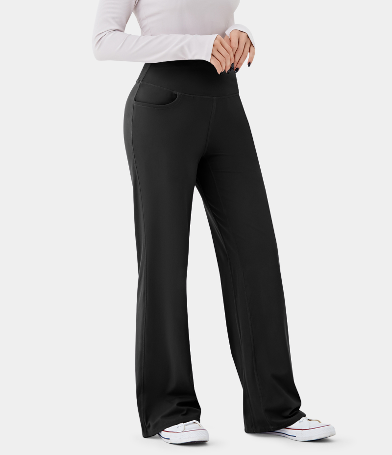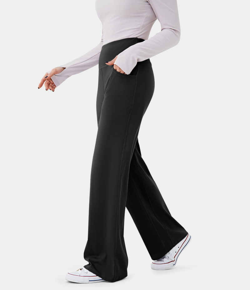:: Halara High Waisted Side Pocket Plain Wide Leg Women's Jogger Black | 489135-XBN