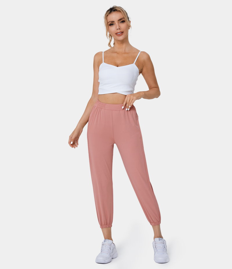 :: Halara High Waisted Side Pocket Plain Women's Pants Candy Pink | 320856-JMK