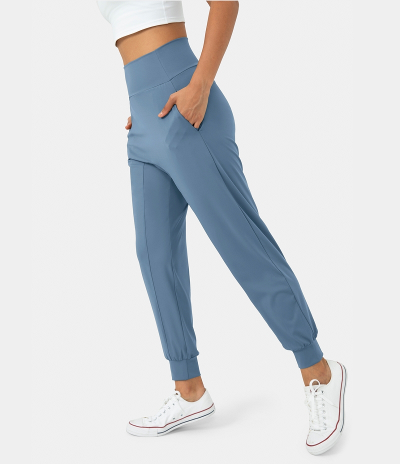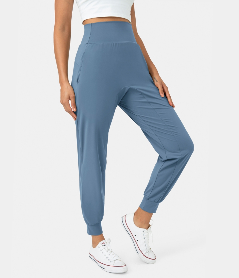 :: Halara High Waisted Side Pocket Plain Yoga Women's Pants Blue Grey | 903652-FVB