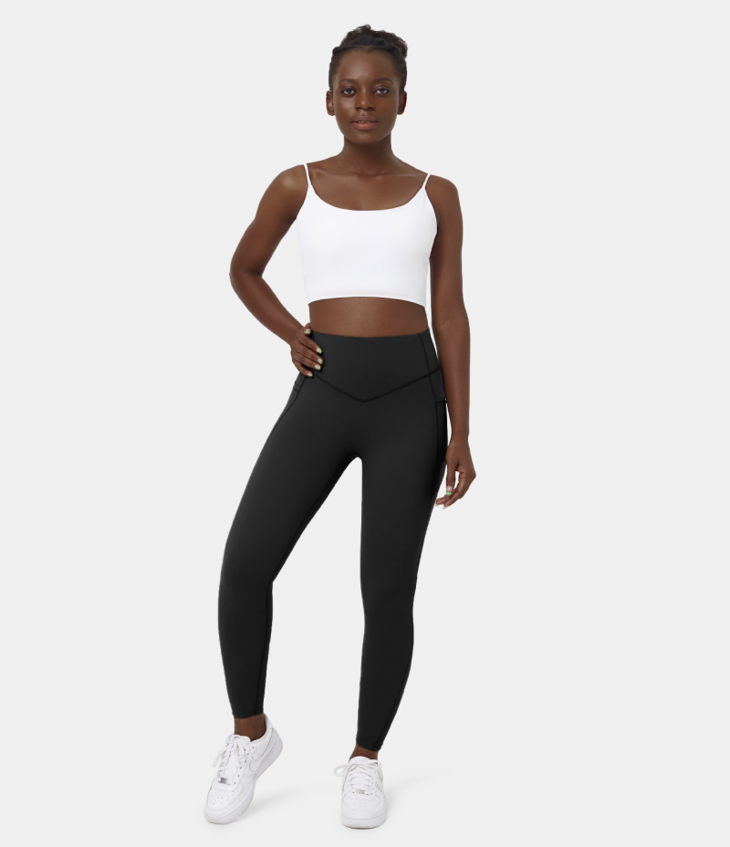 :: Halara High Waisted Side Pocket Shaping Training 7/8 Women's Leggings Black | 918635-JBA
