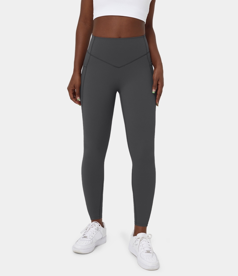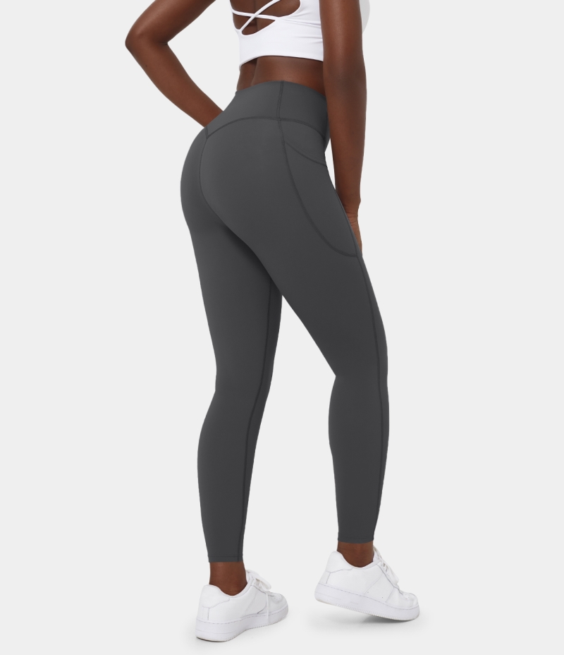 :: Halara High Waisted Side Pocket Shaping Training 7/8 Women's Leggings Black Oyster | 564031-EPC