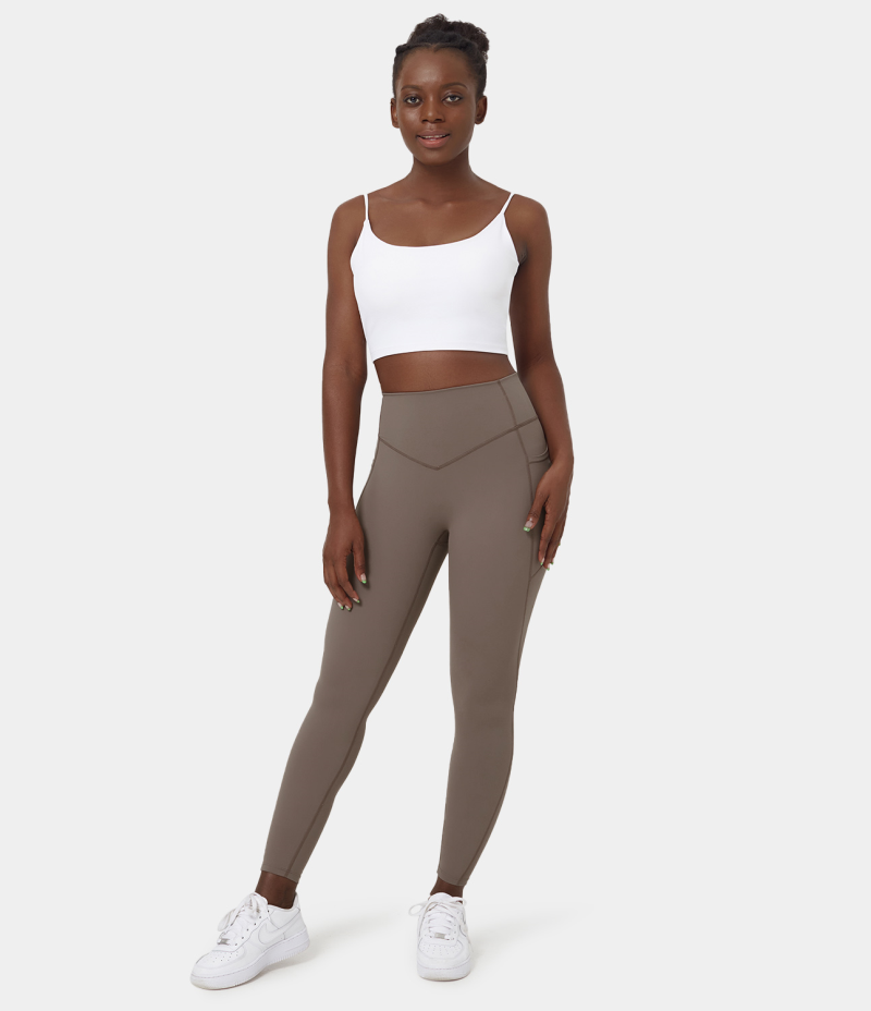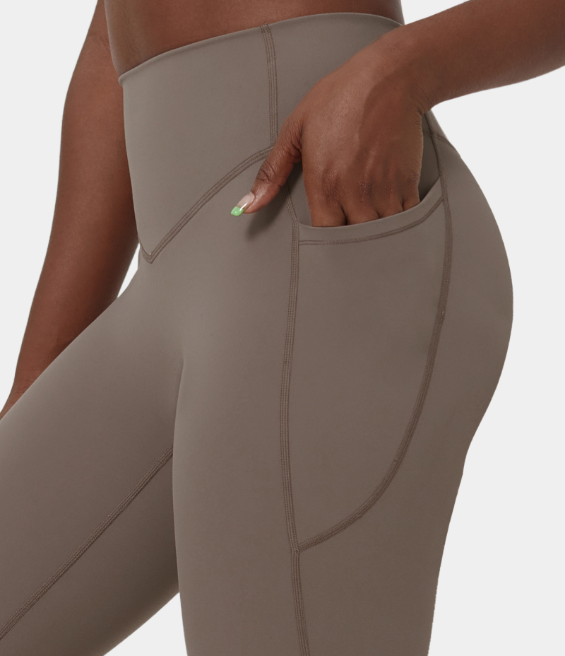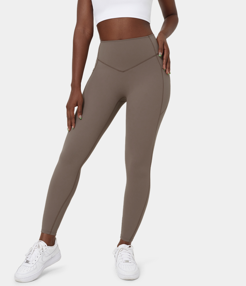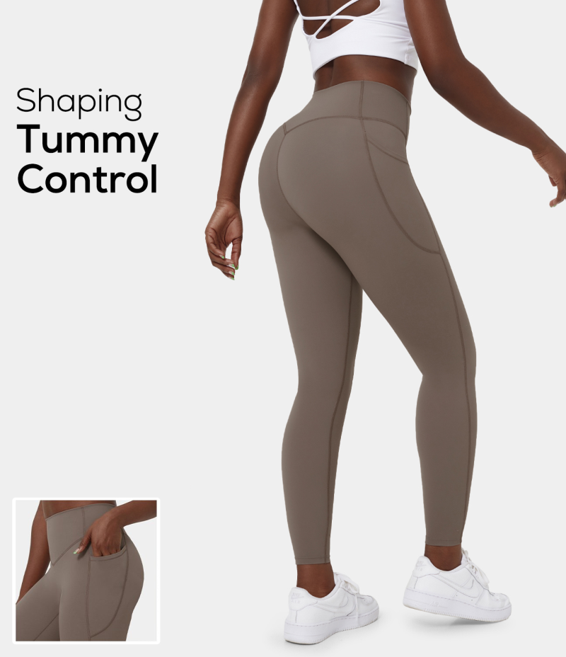 :: Halara High Waisted Side Pocket Shaping Training 7/8 Women's Leggings Deep Taupe | 154867-QZI
