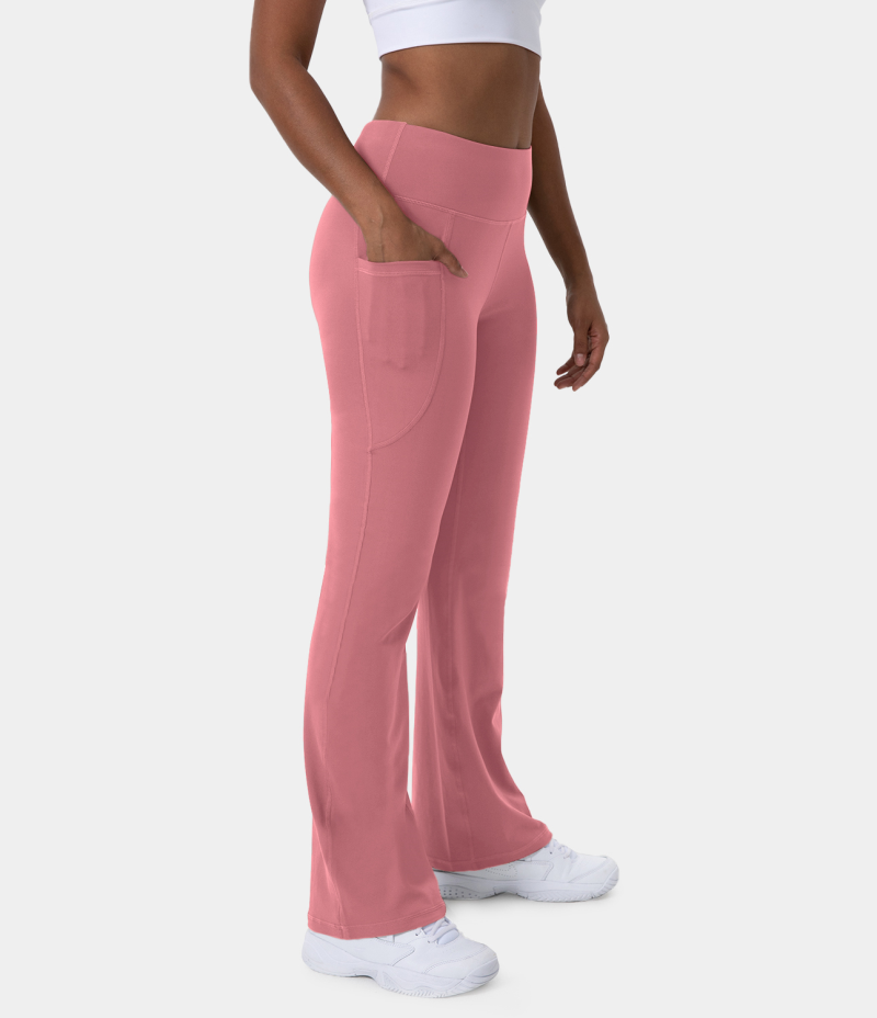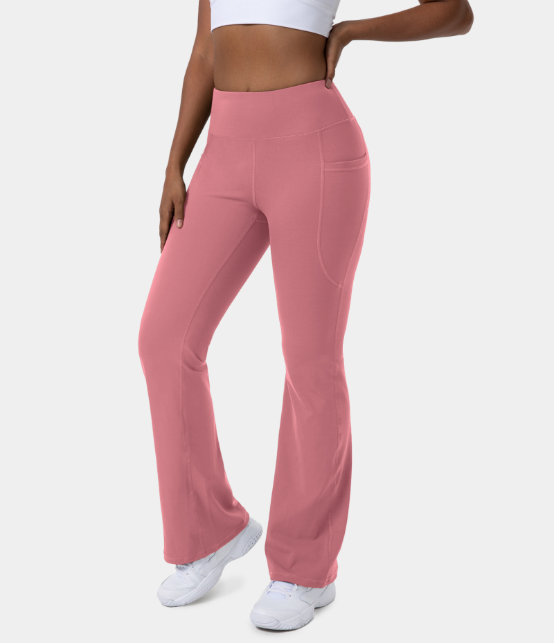 :: Halara High Waisted Side Pocket Slight Flare Women's Leggings Lilac Pink | 025791-TDY