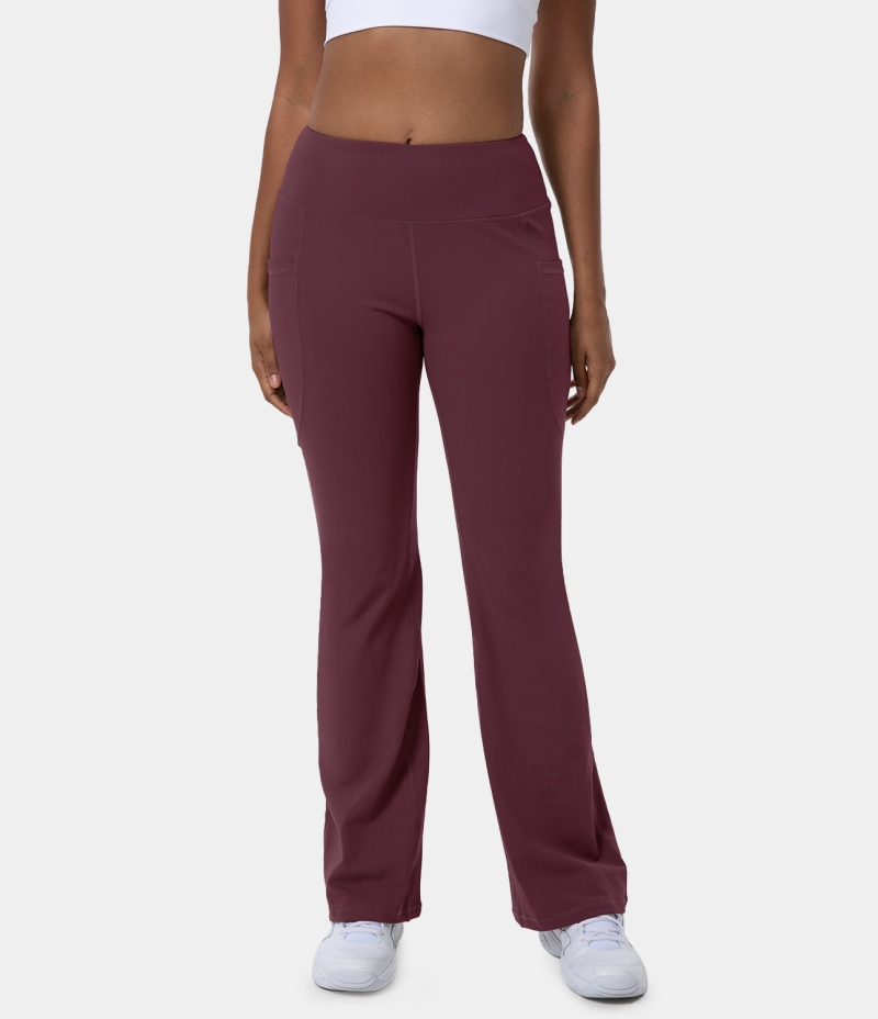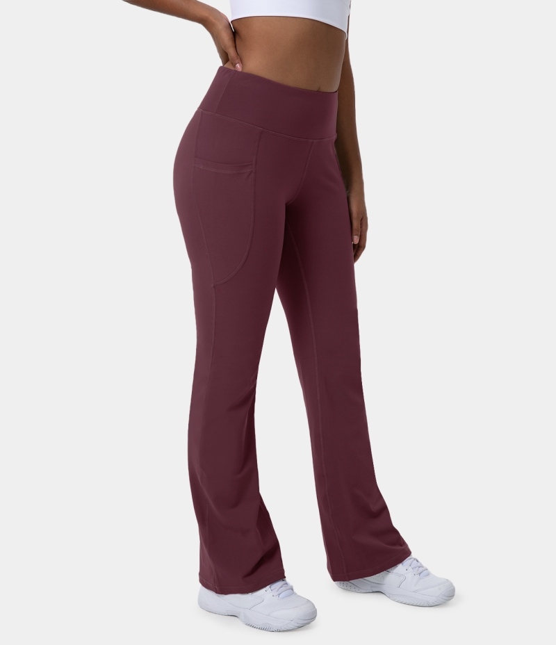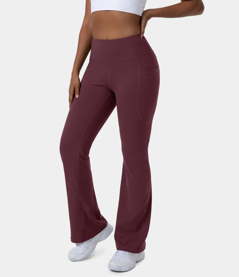 :: Halara High Waisted Side Pocket Slight Flare Women's Leggings Red Violet | 148376-ELO