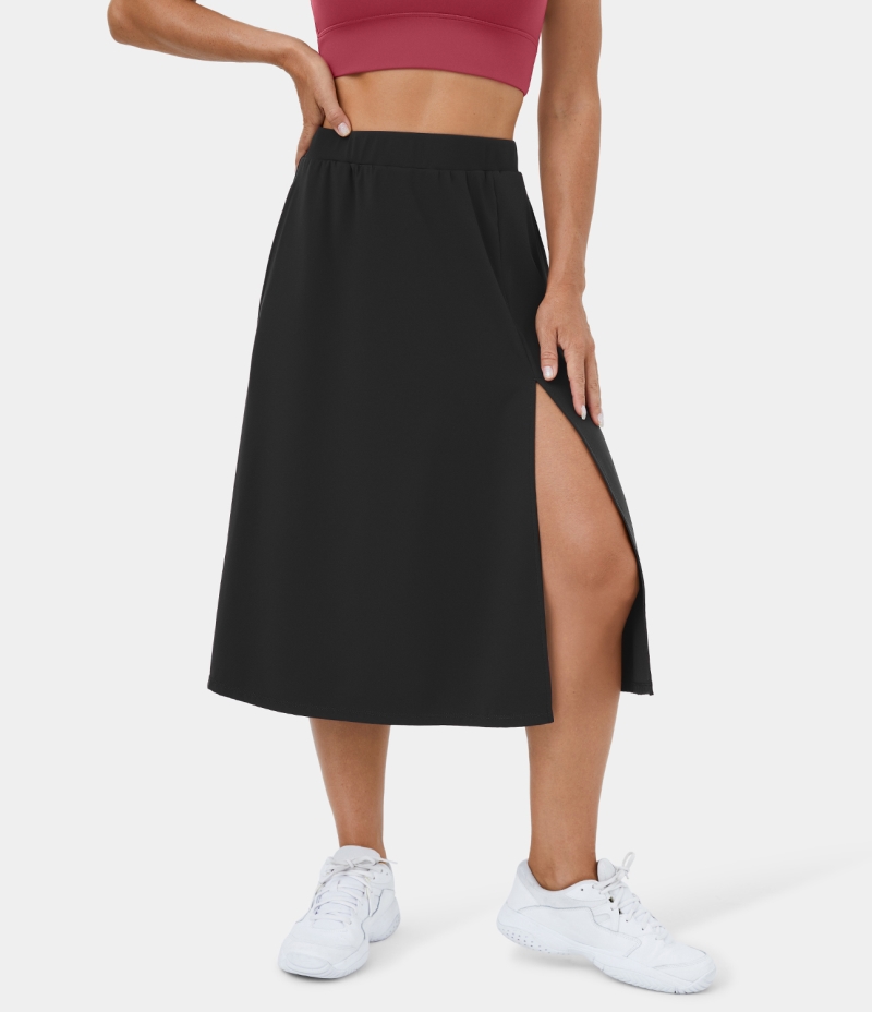 Halara High Waisted Side Pocket Split Midi Casual Women's Skirts Black | 342986-DHV