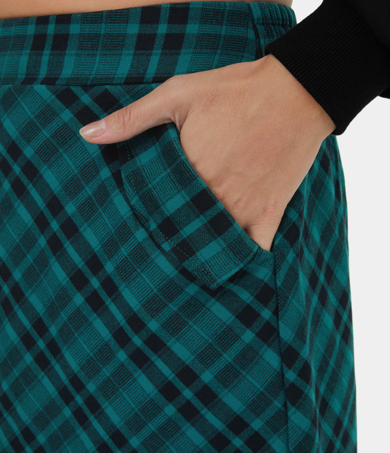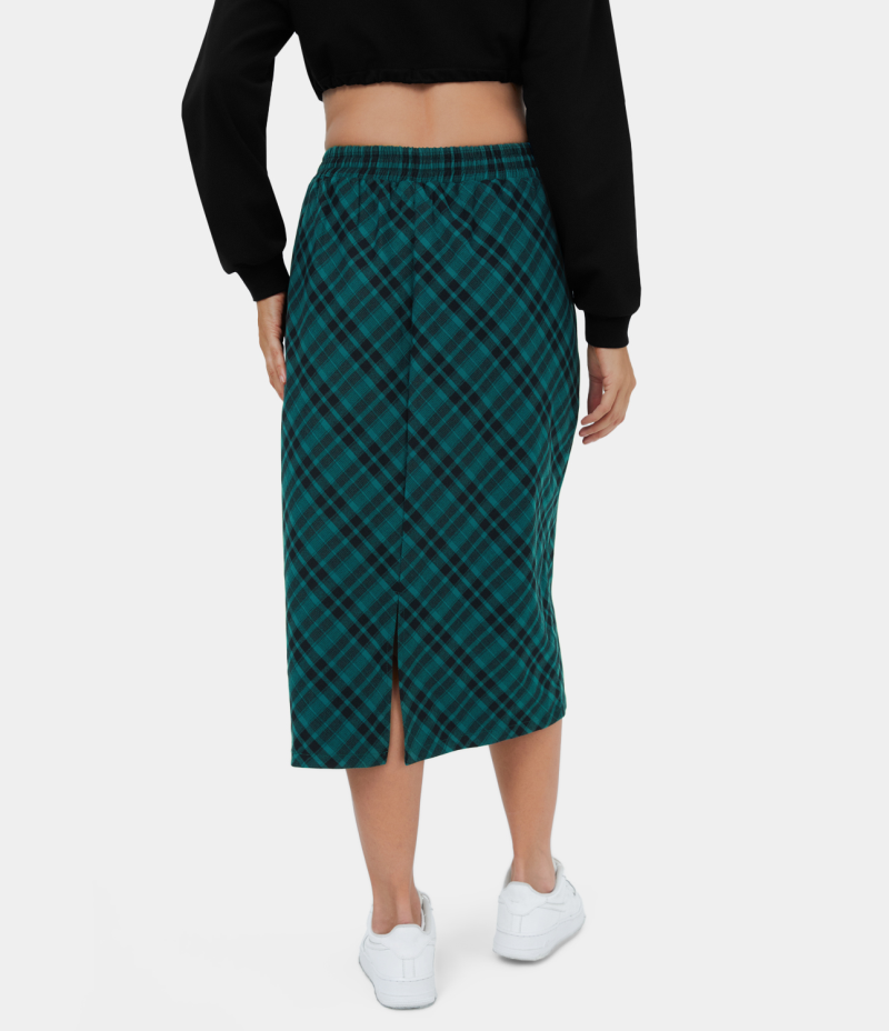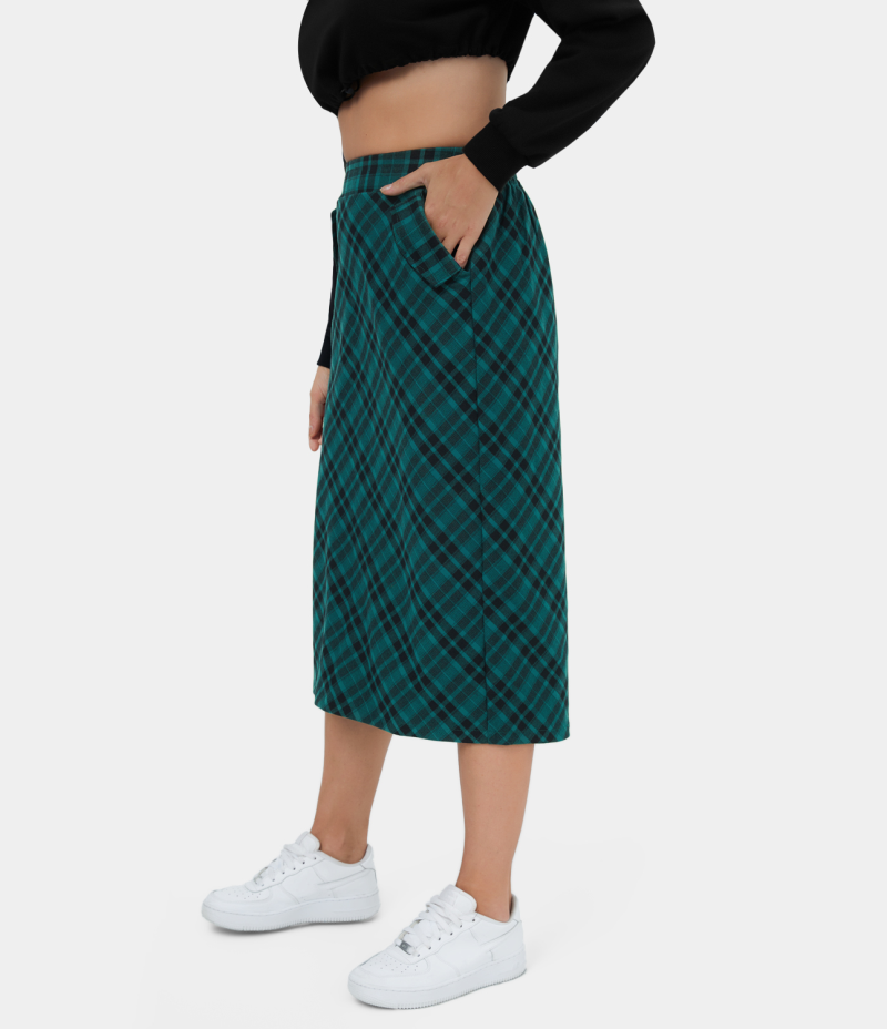 :: Halara High Waisted Side Pocket Split Plaid Midi Casual Women's Skirts Hunter Green Plaid | 239605-RDU