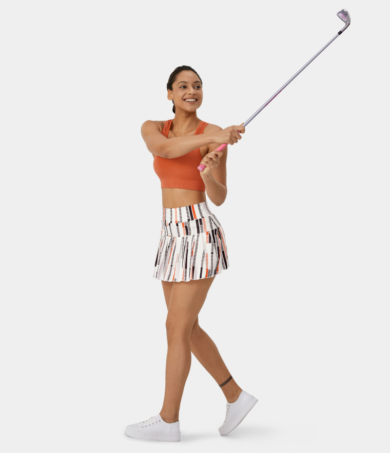 :: Halara High Waisted Side Pocket Striped Pleated Women's Skirts White | 154938-MTJ