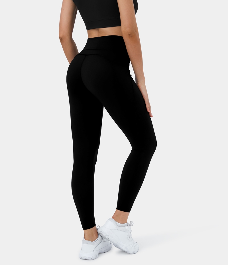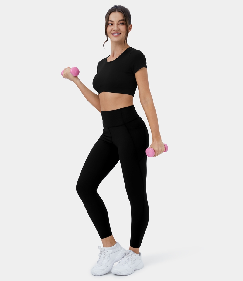 :: Halara High Waisted Side Pocket Training 7/8 Women's Leggings Black | 973851-OAJ