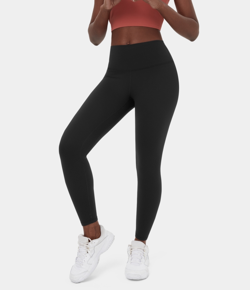 :: Halara High Waisted Side Waistband Pocket Fleece Casual Women's Leggings Black | 306597-BPL