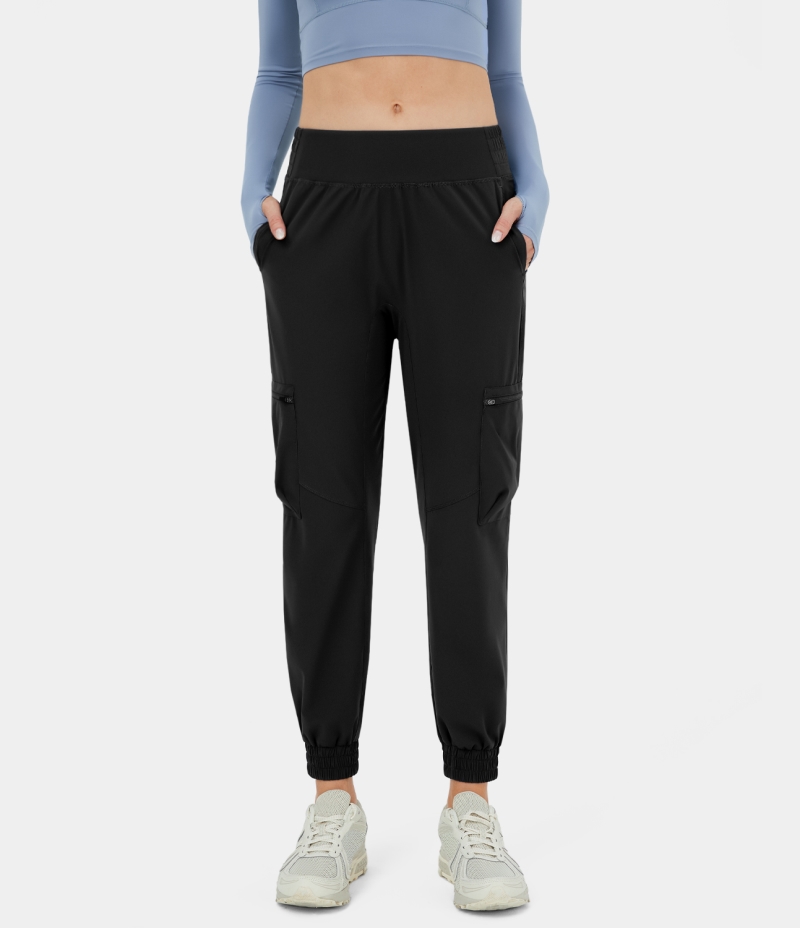 :: Halara High Waisted Side Zip Pocket Casual Cargo Women's Jogger Black | 760532-IHT