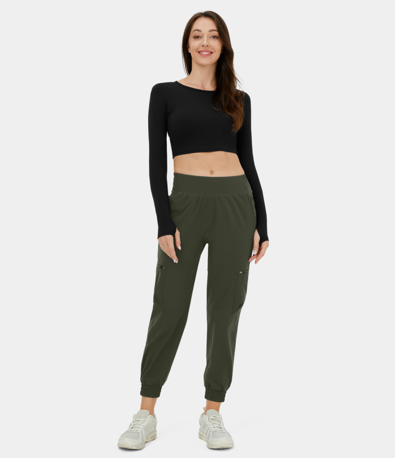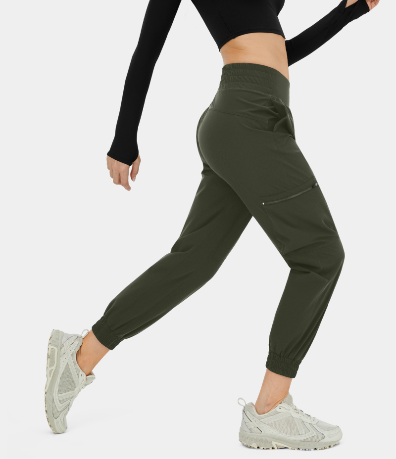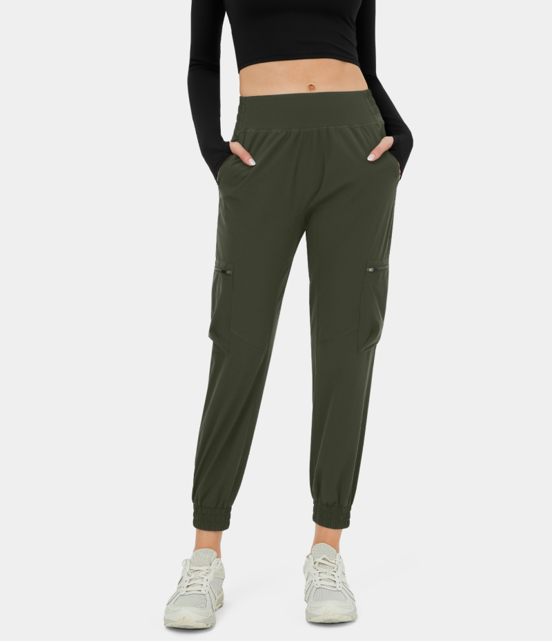 :: Halara High Waisted Side Zip Pocket Casual Cargo Women's Jogger Kombu Green | 572106-YVZ