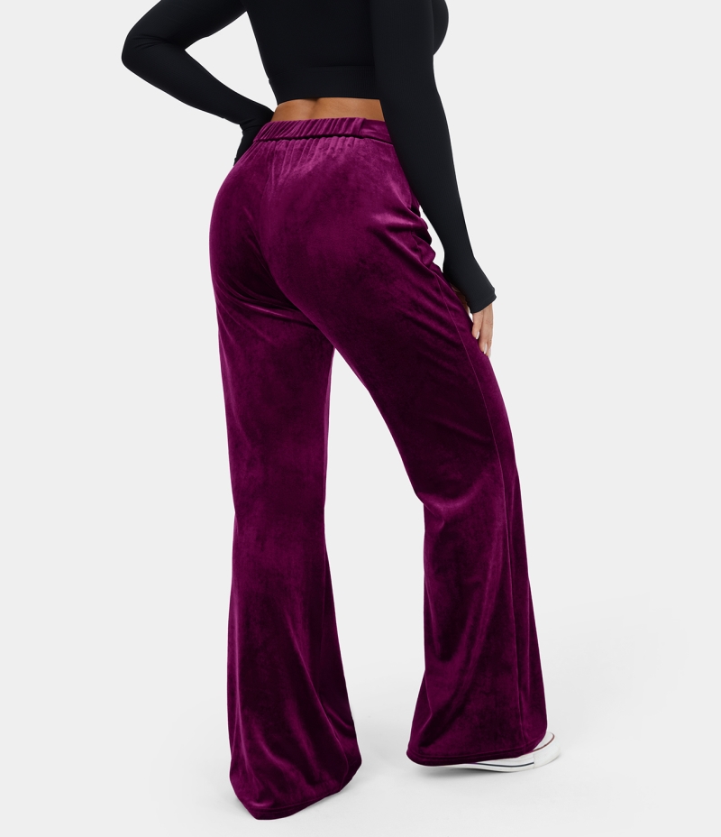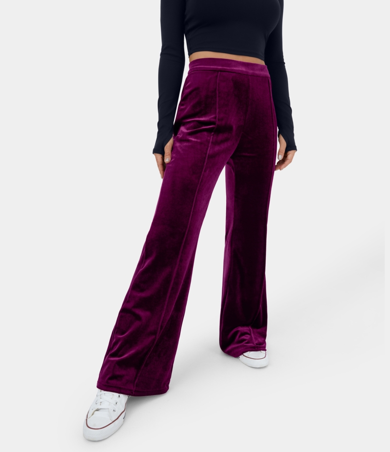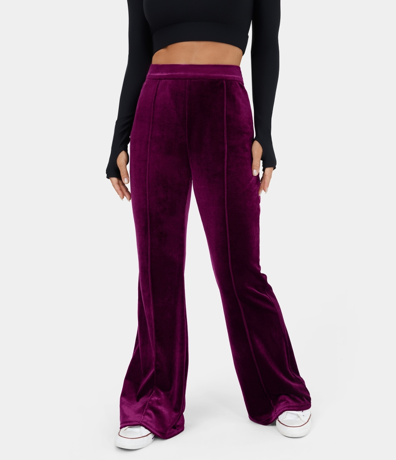 :: Halara High Waisted Side Zipper Flare Velvet Casual Women's Pants Red Violet | 451268-FQA