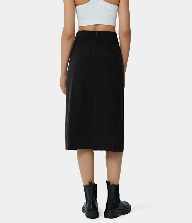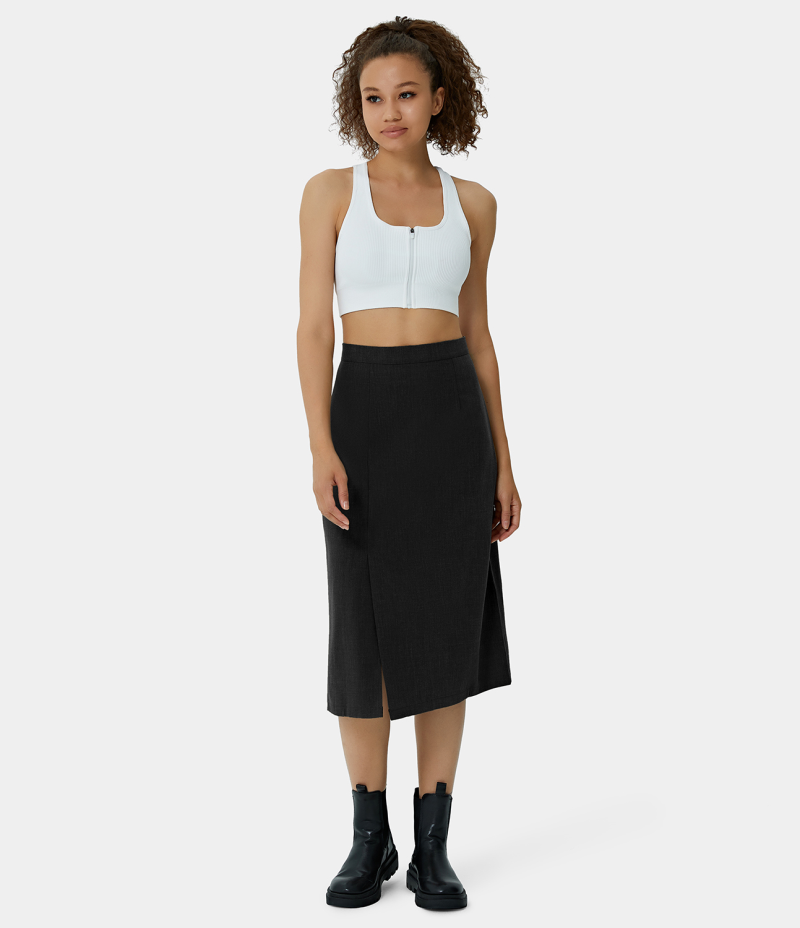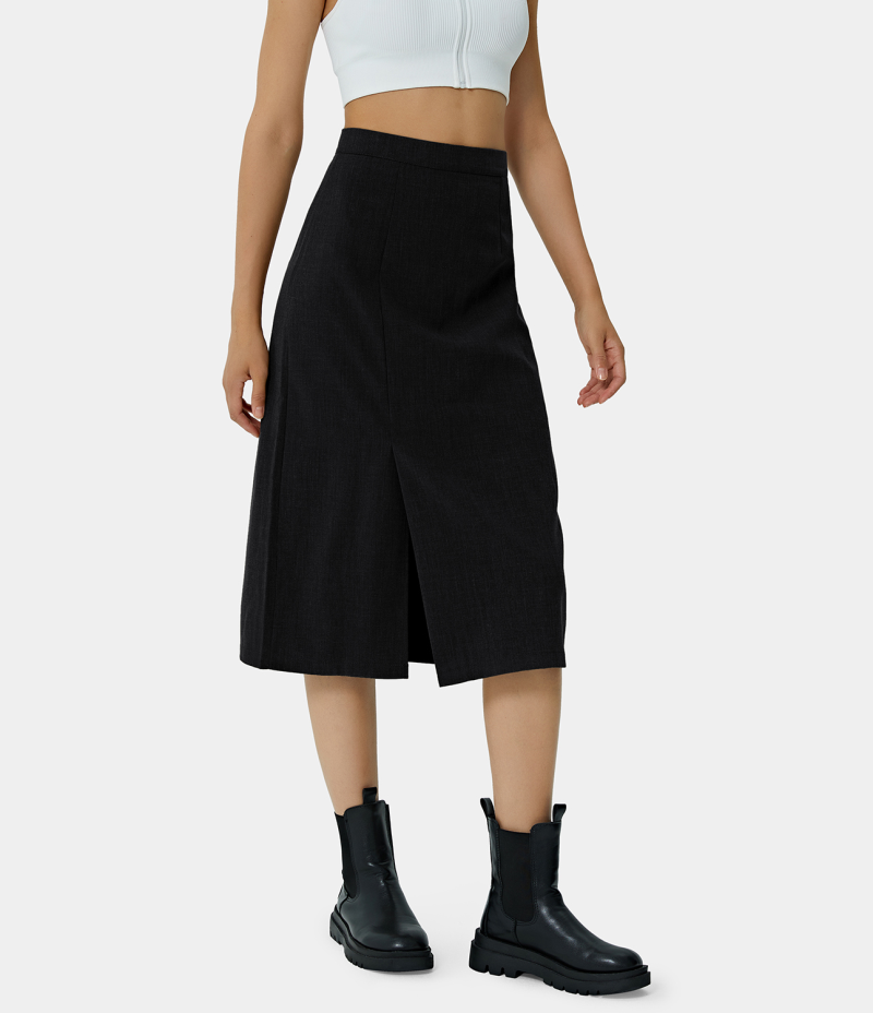 :: Halara High Waisted Split Hem Back Zipper Midi Women's Skirts Black | 576389-FBS