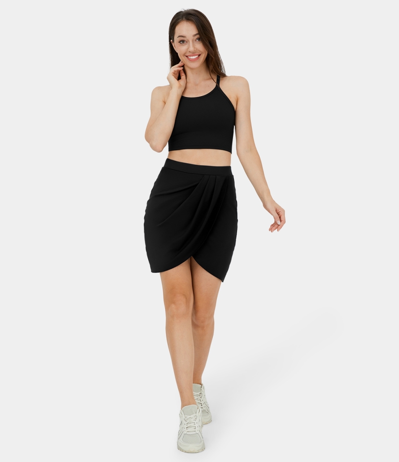 :: Halara High Waisted Stacked Crossover Hem 2-in-1 Side Pocket Mini Golf Women's Skirts Black | 635901-JDG