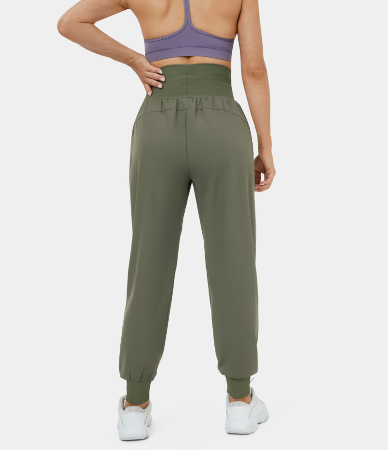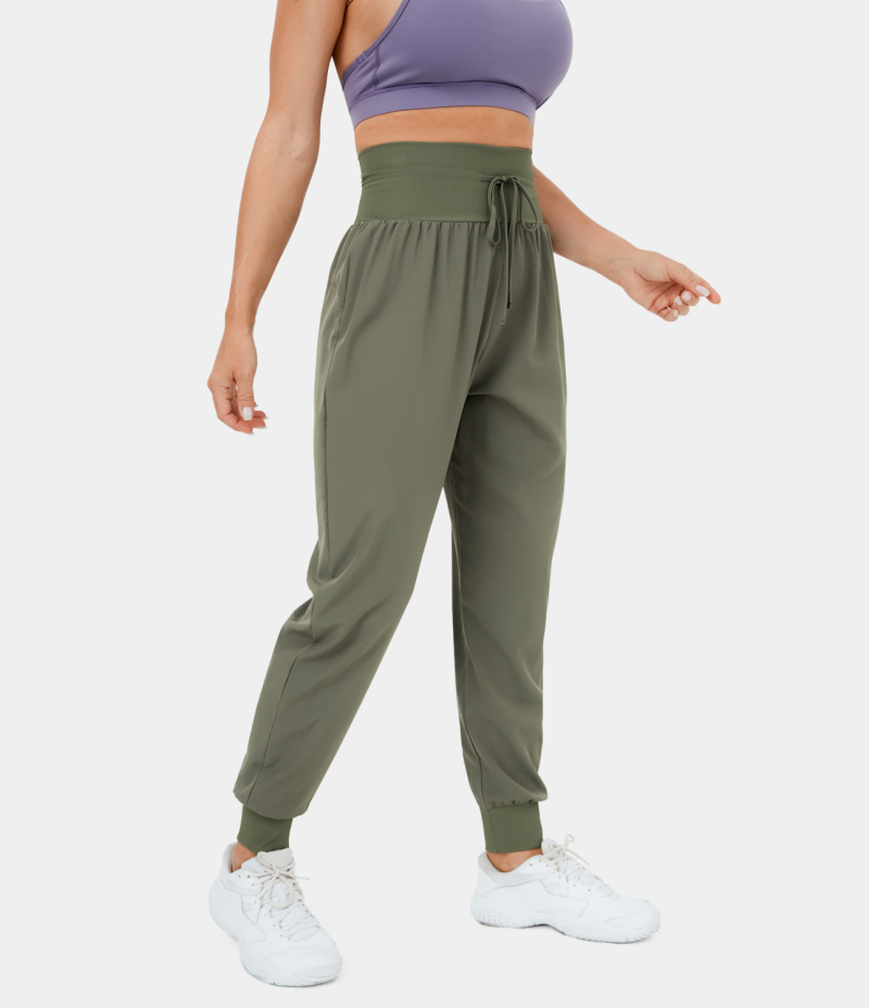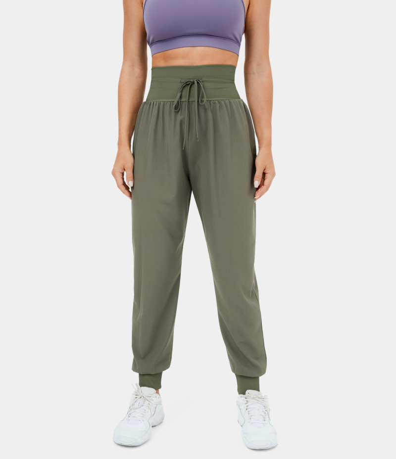 :: Halara High Waisted Wide Waistband Drawstring Ribbed Casual Women's Jogger Agave Green | 290641-EBF