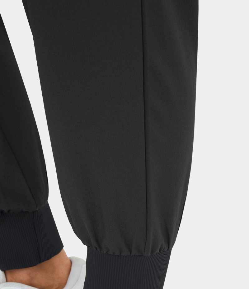 :: Halara High Waisted Wide Waistband Drawstring Ribbed Casual Women's Jogger Black | 291875-JSP
