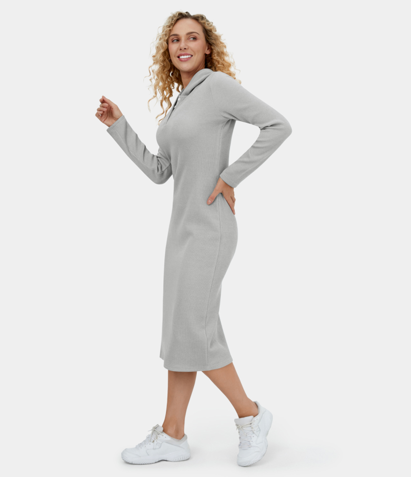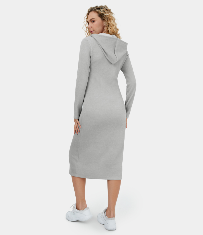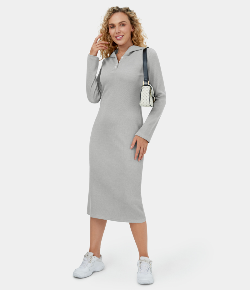 :: Halara Hooded Button Bodycon Midi Casual Women's Dress Dawn Blue | 473059-HMQ