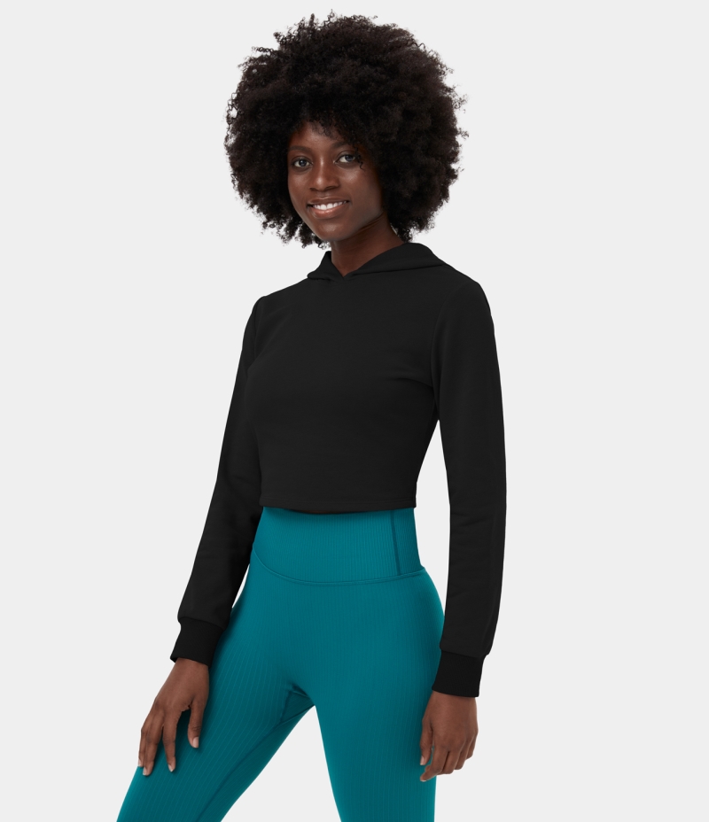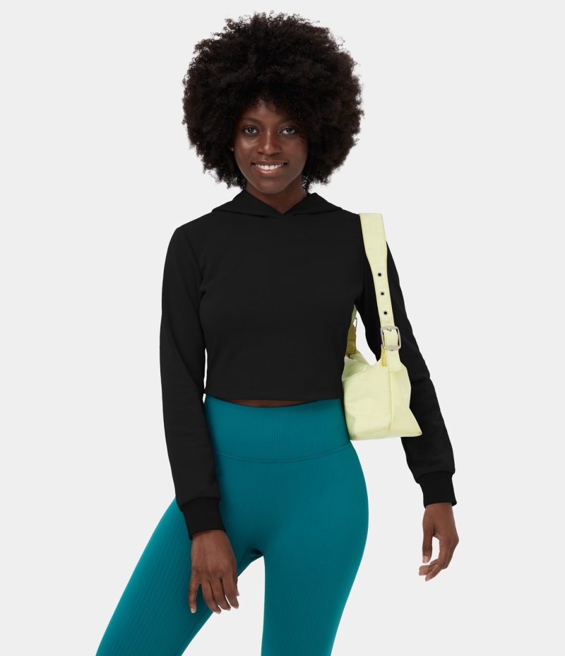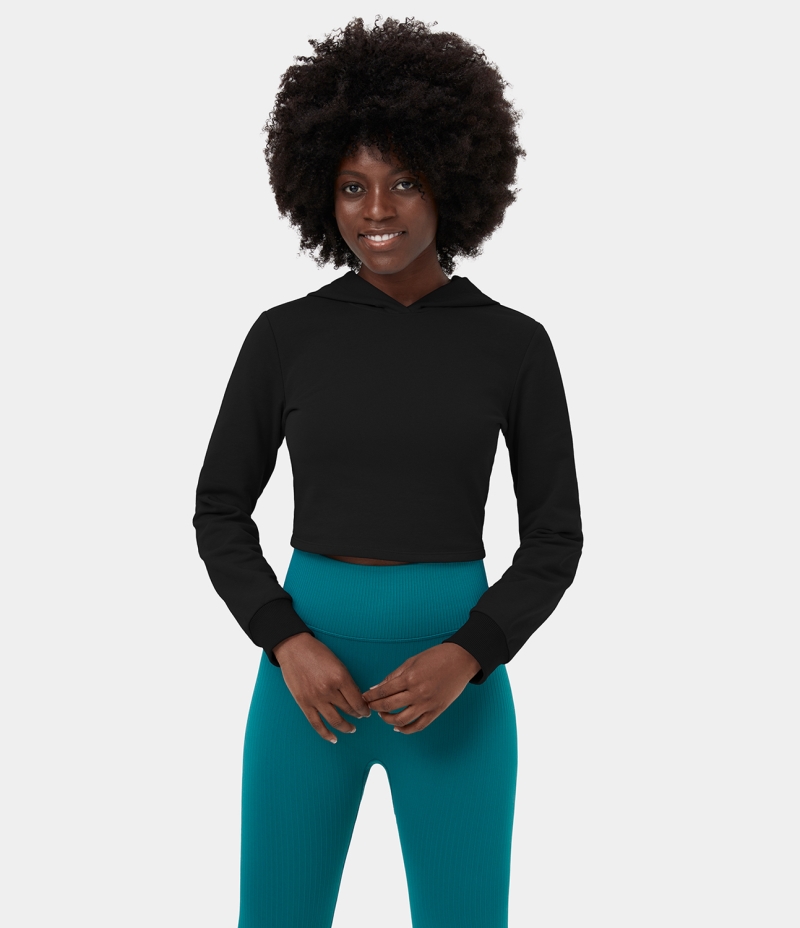 Halara Hooded Crisscross Lace Up Cropped Casual Hoodie Sports Sweatshirt Women's Tops Black | RQKGYAX-16
