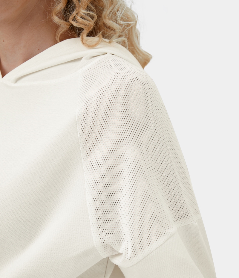 :: Halara Hooded Drawstring Contrast Mesh Cropped Yoga Sports Sweatshirt Women's Tops White | QJBTOIE-35