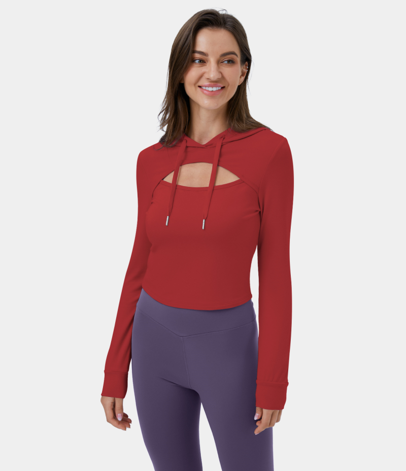 :: Halara Hooded Drawstring Cut Out Cropped Casual Hoodie Sweatshirt Women's Tops Lava Falls | LDUEVGA-13