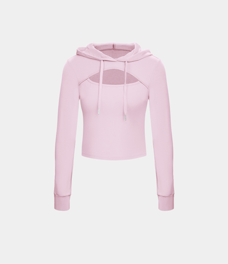 :: Halara Hooded Drawstring Cut Out Cropped Casual Hoodie Sweatshirt Women's Tops Lavender Fog | ZGXHUKE-56