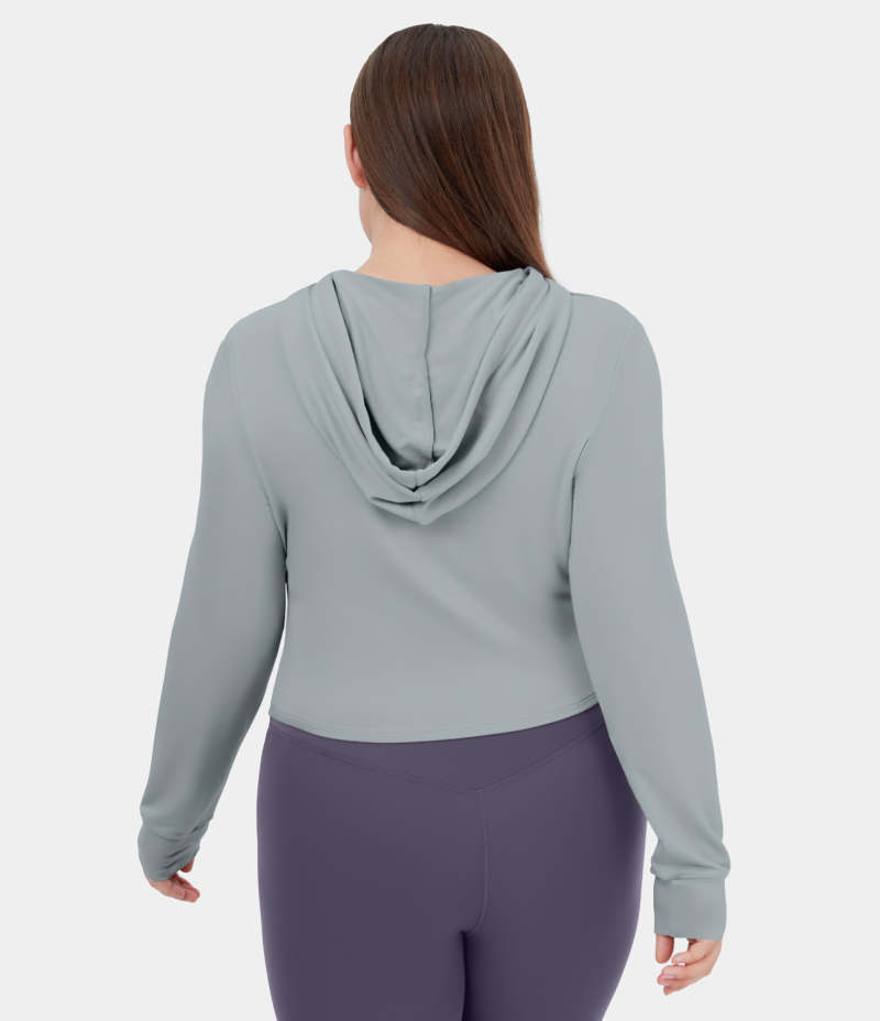 Halara Hooded Drawstring Cut Out Plus Size Cropped Casual Hoodie Sweatshirt Women's Tops Grey | QHPUYEM-93