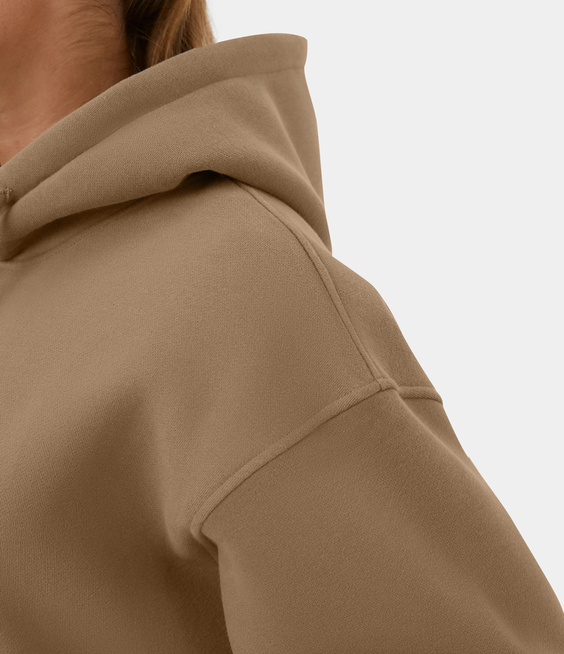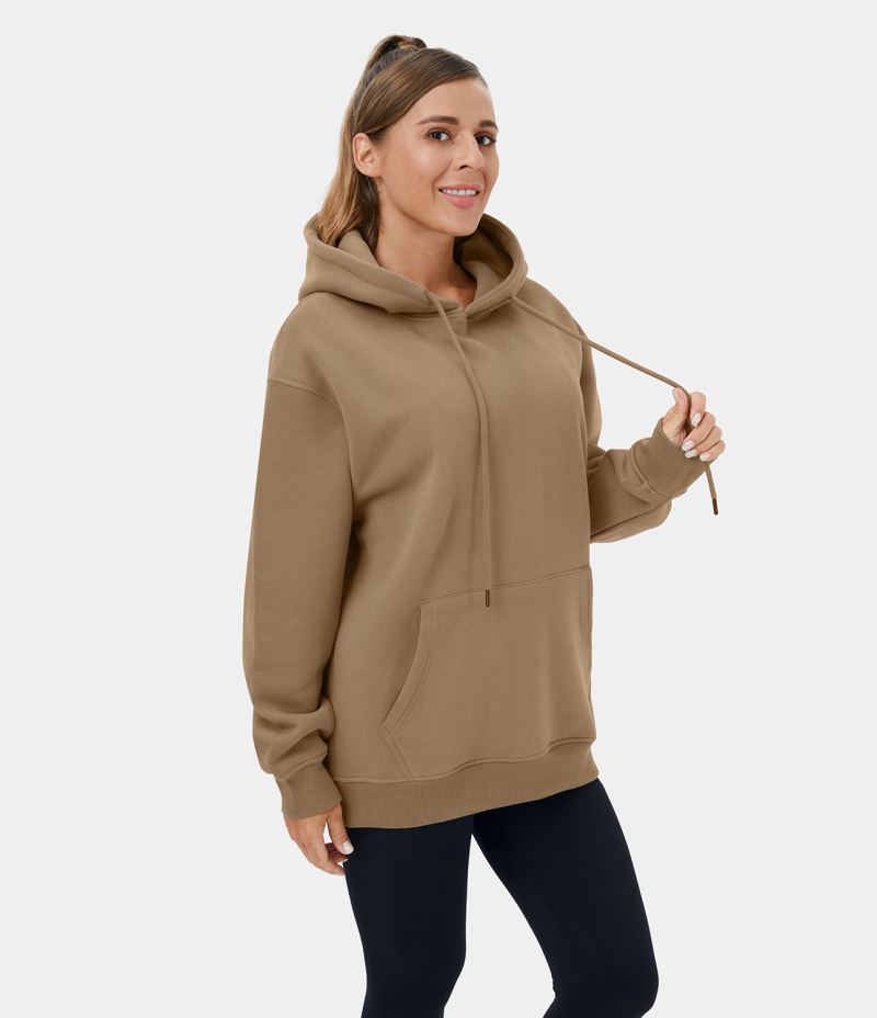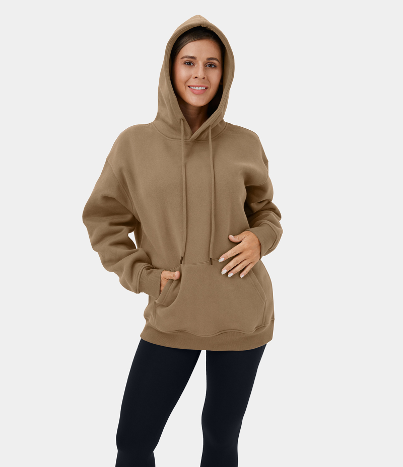 Halara Hooded Drawstring Dropped Shoulder Kangaroo Pocket Fleece Hoodie Sweatshirt Women's Tops Metallic Brown | AJVCELF-31