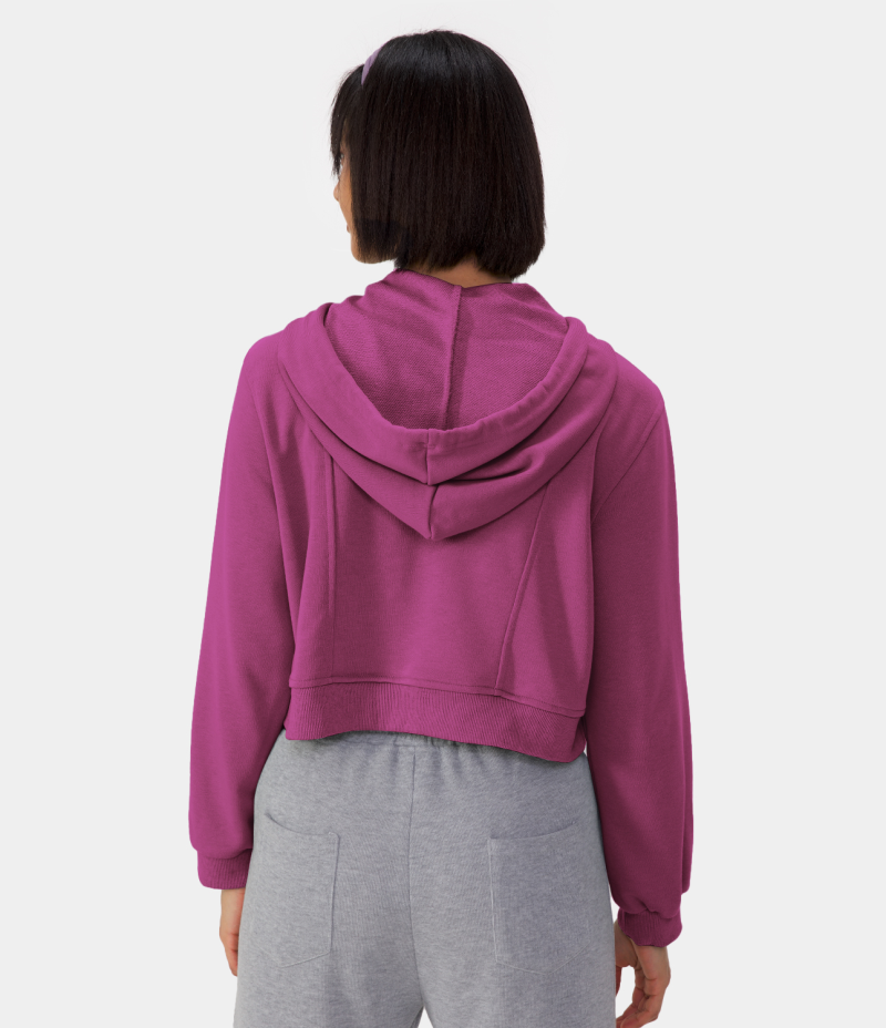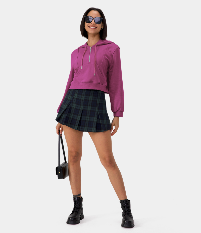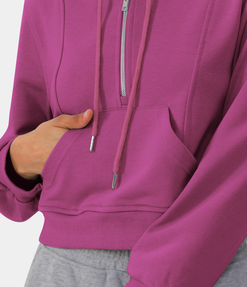 :: Halara Hooded Drawstring Half Zip Kangaroo Pocket Cropped Pullover Hoodie Sweatshirt Women's Tops Red Violet | BRXGADS-75