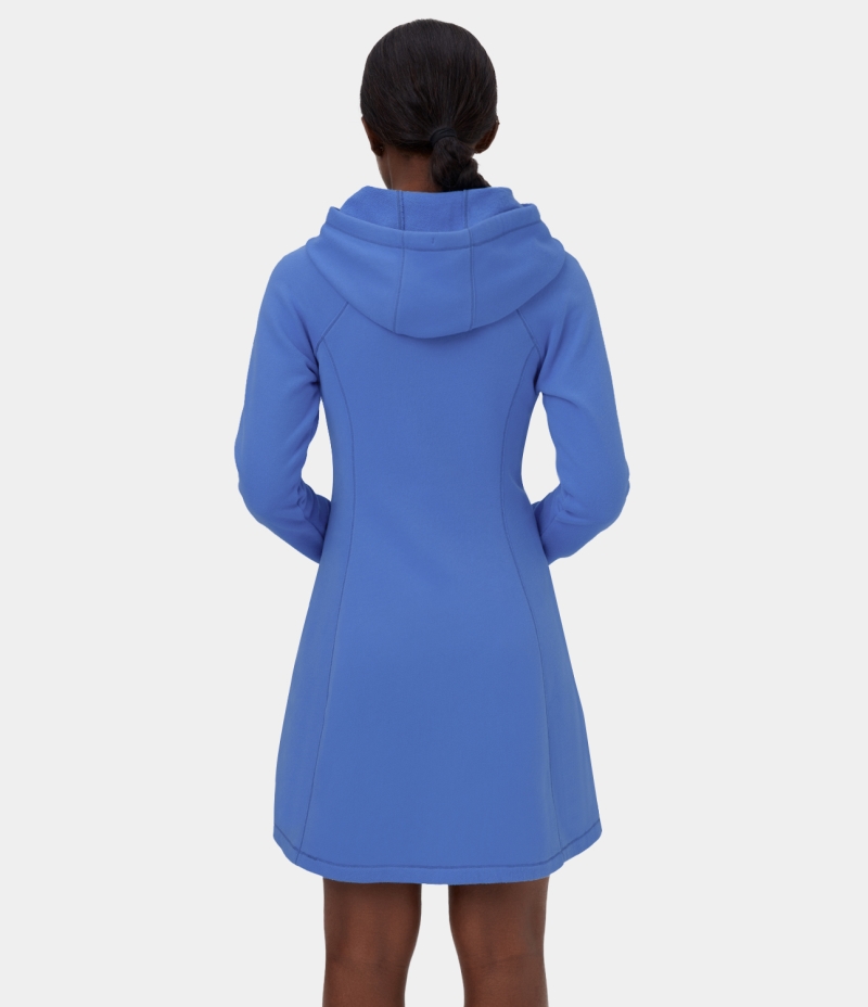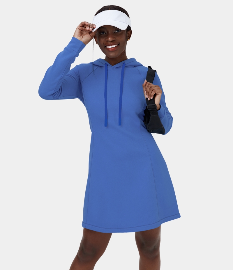 :: Halara Hooded Drawstring Long Sleeve Fleece Casual Mini Women's Dress Klein Blue | 048723-QRY
