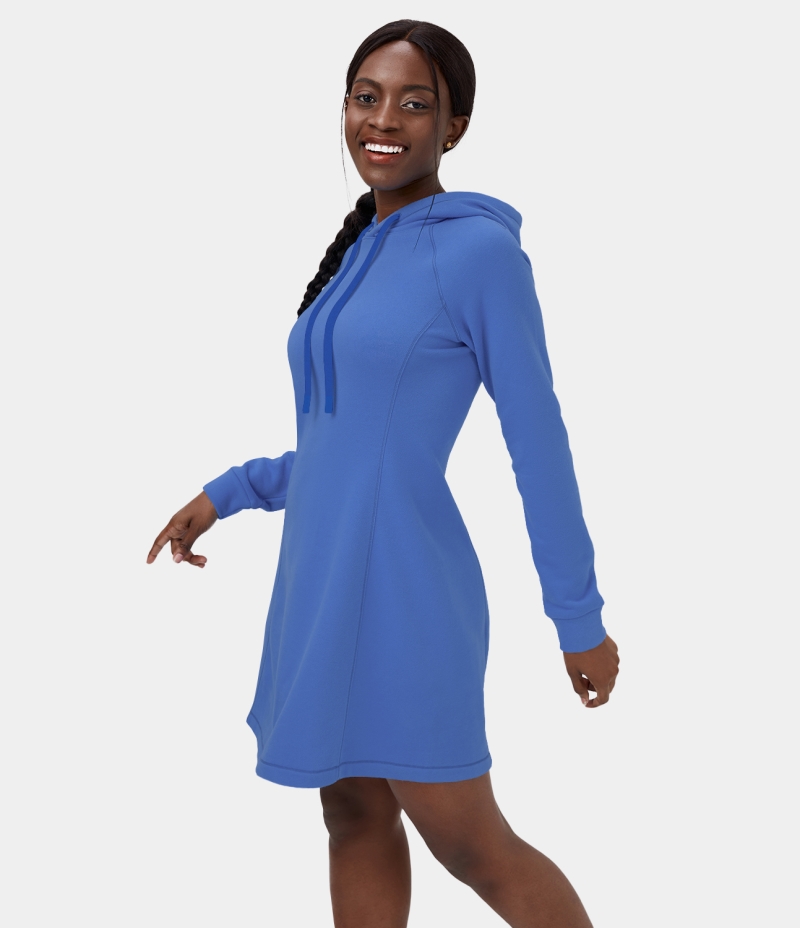 Halara Hooded Drawstring Long Sleeve Fleece Casual Mini Women's Dress Klein Blue | 048723-QRY