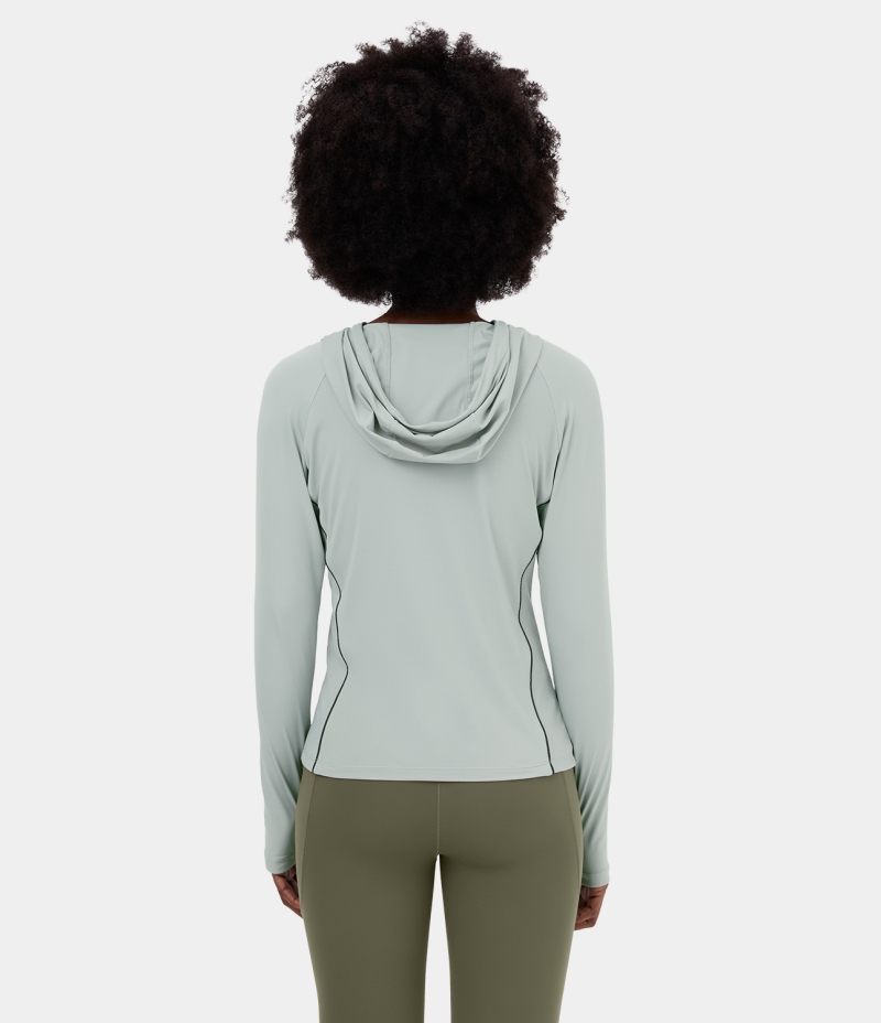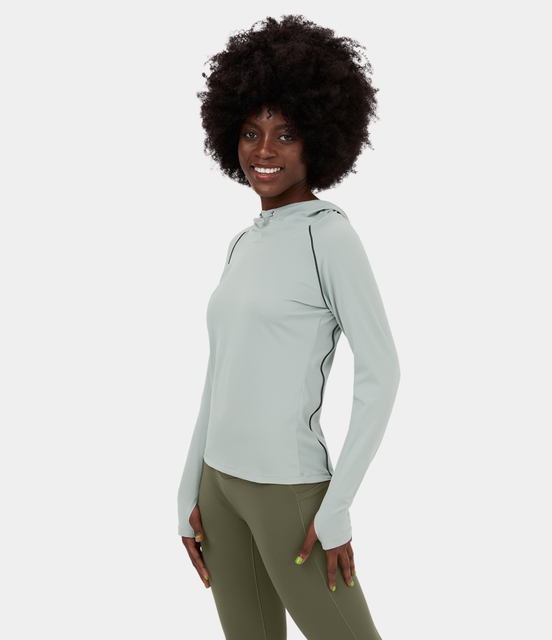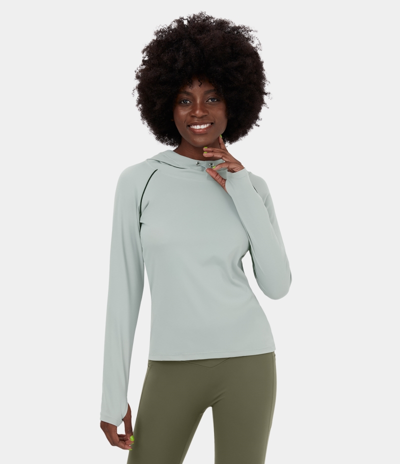 Halara Hooded Drawstring Thumb Hole Yoga Sports Women's Tops Smoke | FMLXDTP-12