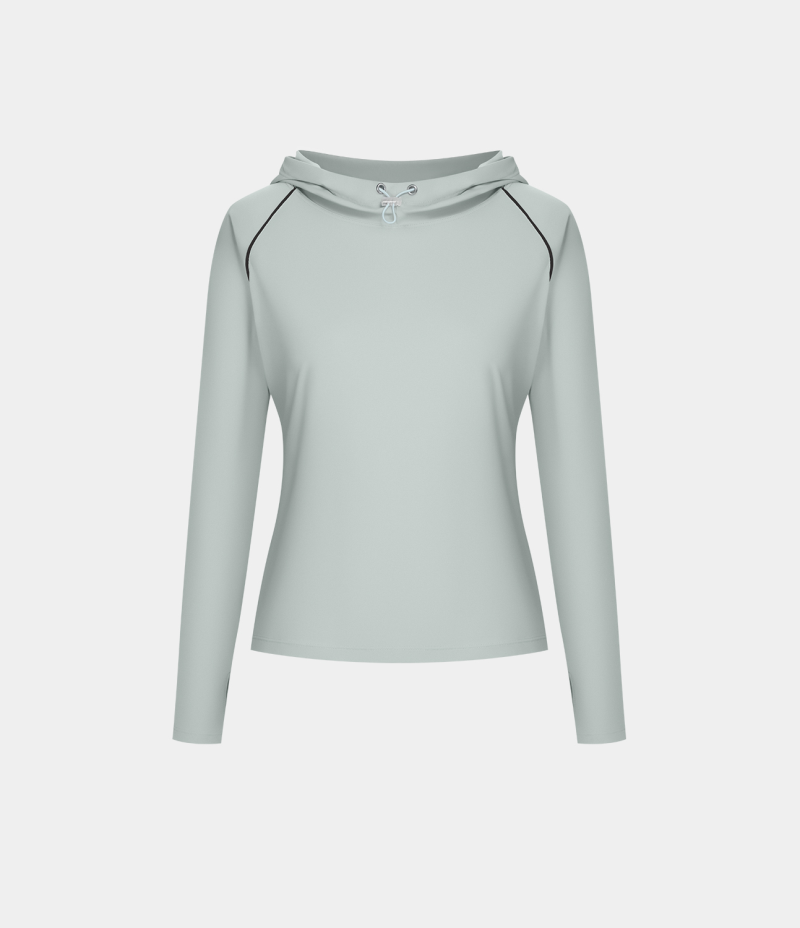 :: Halara Hooded Drawstring Thumb Hole Yoga Sports Women's Tops Smoke | FMLXDTP-12