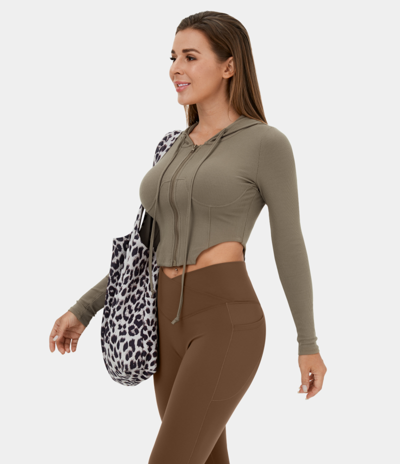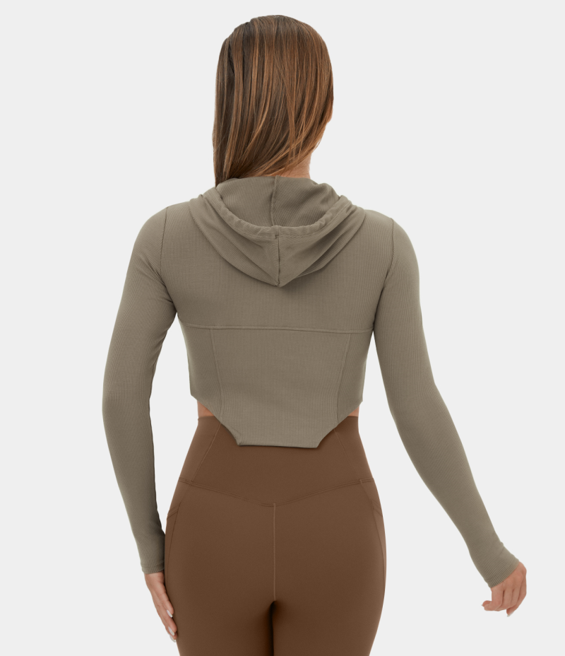Halara Hooded Drawstring Zipper Curved Hem Cropped Casual Hoodie Sweatshirt Women's Tops Fallen Rock | THACSFM-50